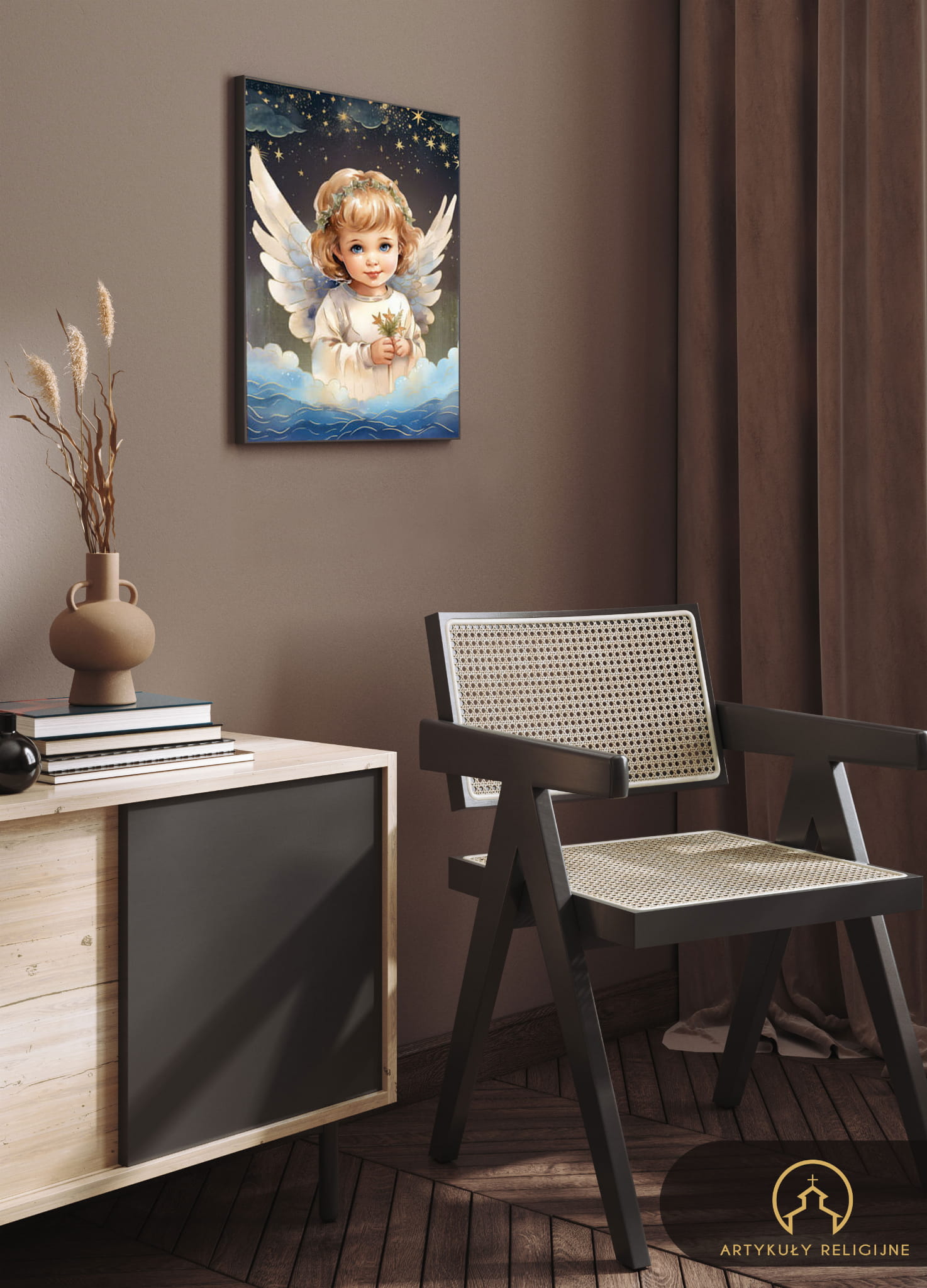 Ikona religijna Anioł Stróż dla dziecka (prezent na Chrzest Święty lub urodziny)