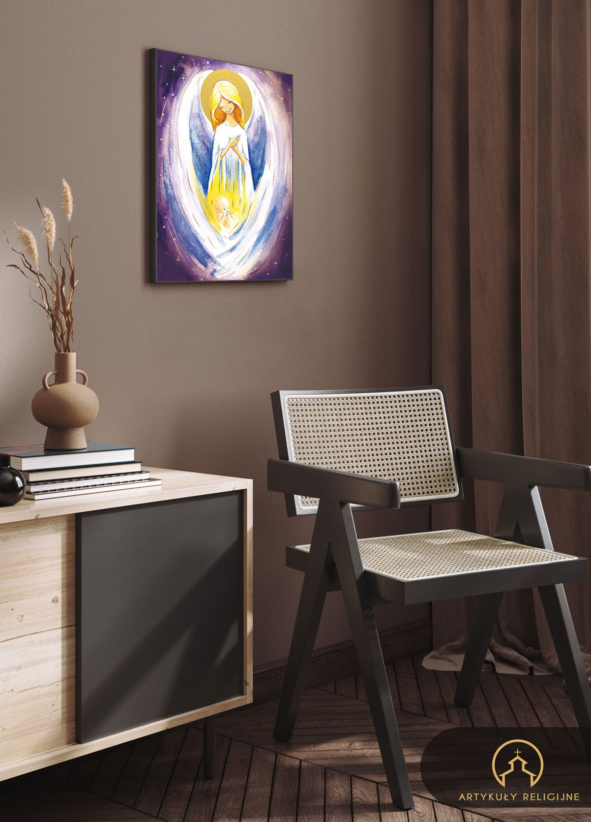 Ikona religijna Anioł Stróż z dzieckiem (pamiątka Chrztu Świętego)