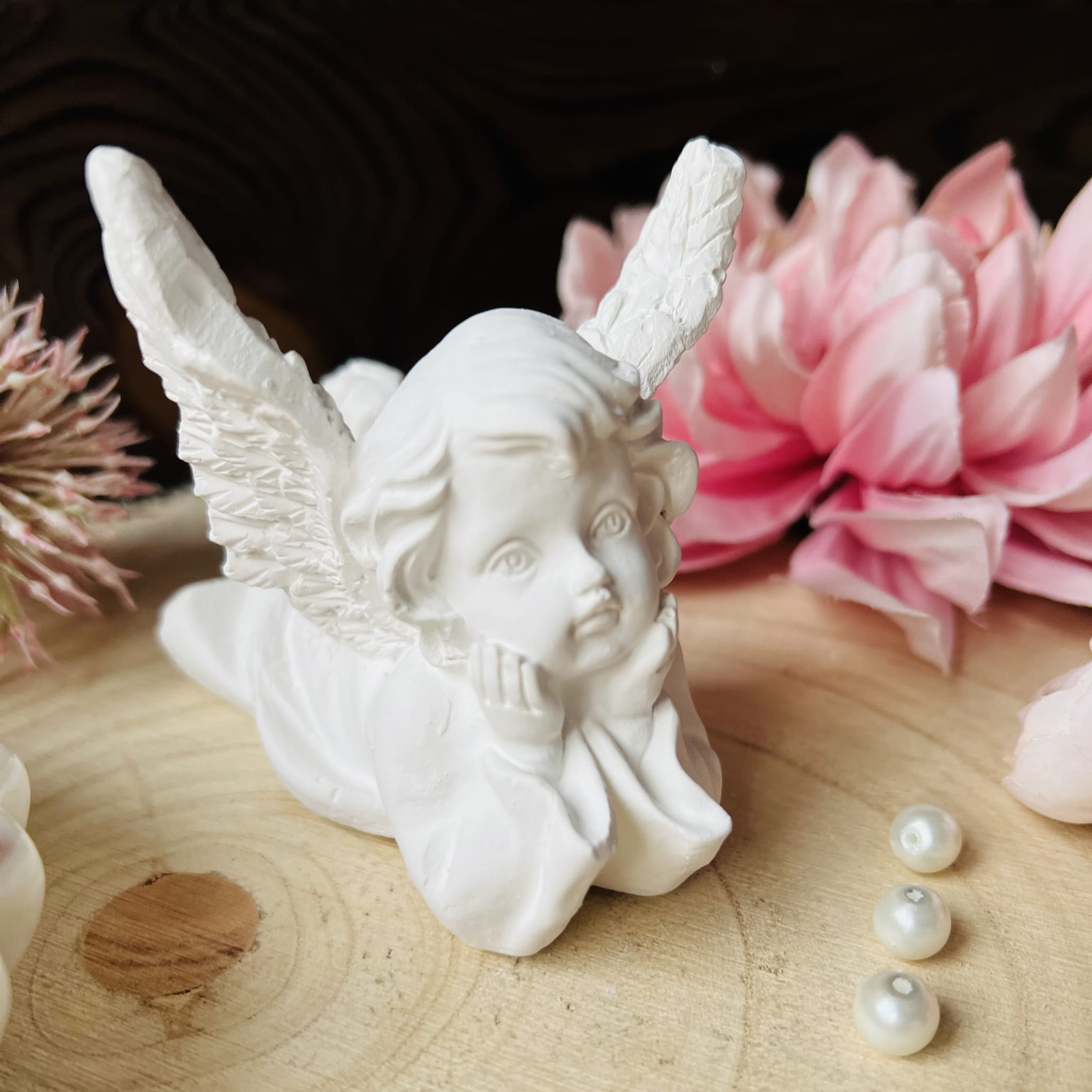 Wykonane z wysokiej jakości gipsu, każde aniołki zachwycają precyzyjnymi detalami, dodając im elegancji. Niewielkie aniołki to wdzięczne prezenty oraz piękne pamiątki dla gości, cieszące oczy przez lata.