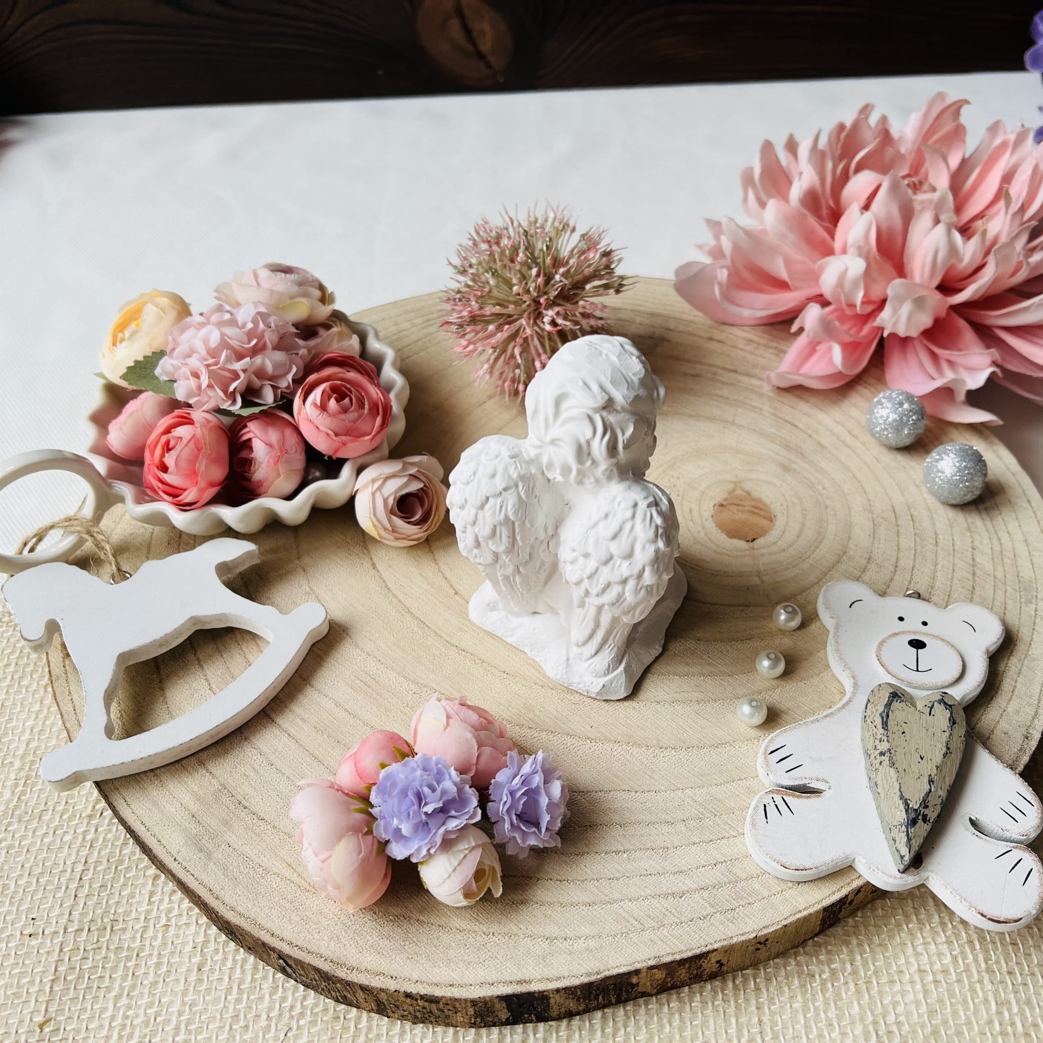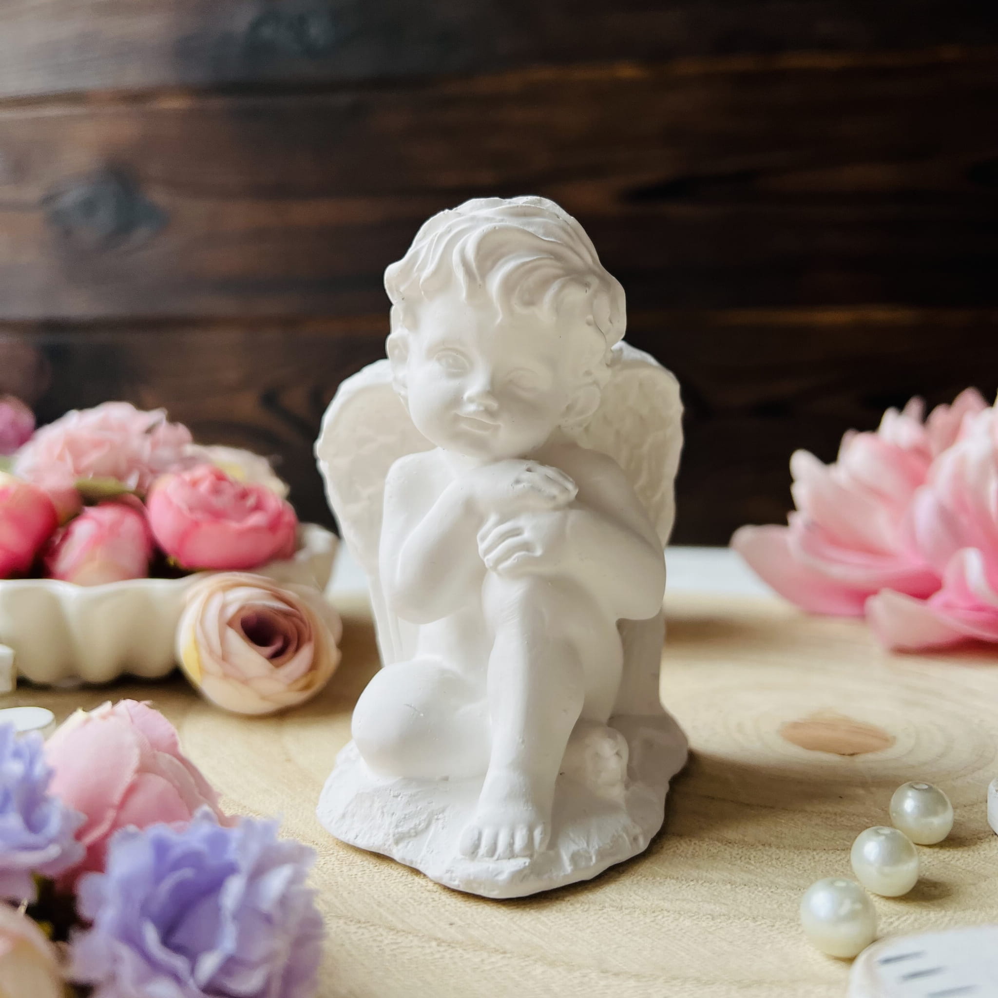 Wykonane z wysokiej jakości gipsu, każde aniołki zachwycają precyzyjnymi detalami, dodając im elegancji. Niewielkie aniołki to wdzięczne prezenty oraz piękne pamiątki dla gości, cieszące oczy przez lata.