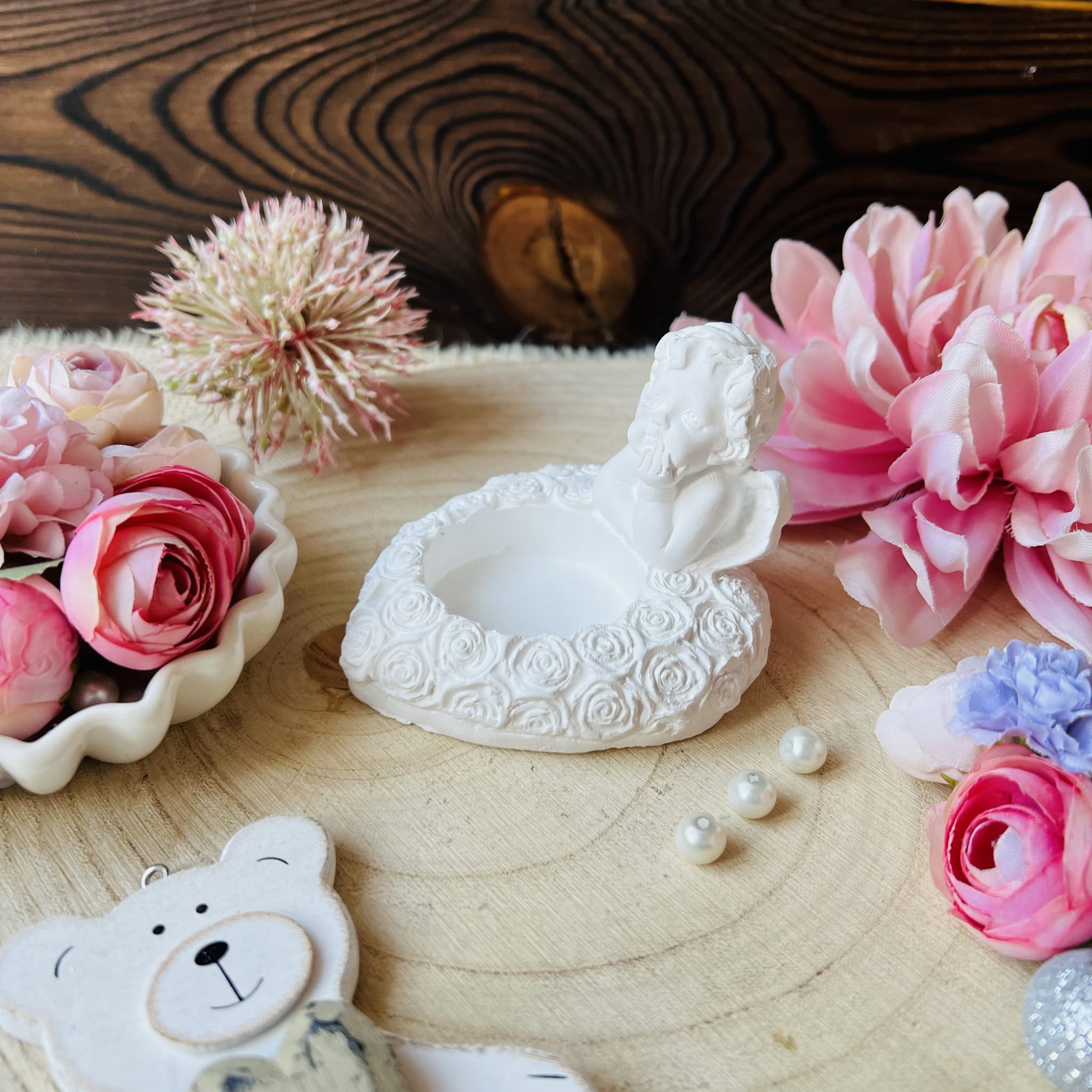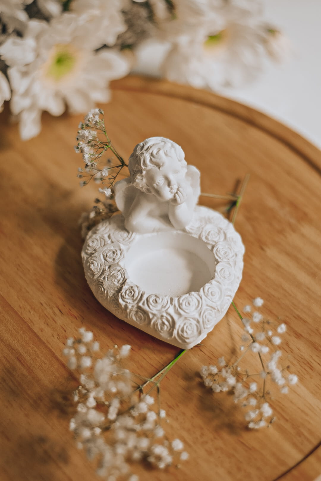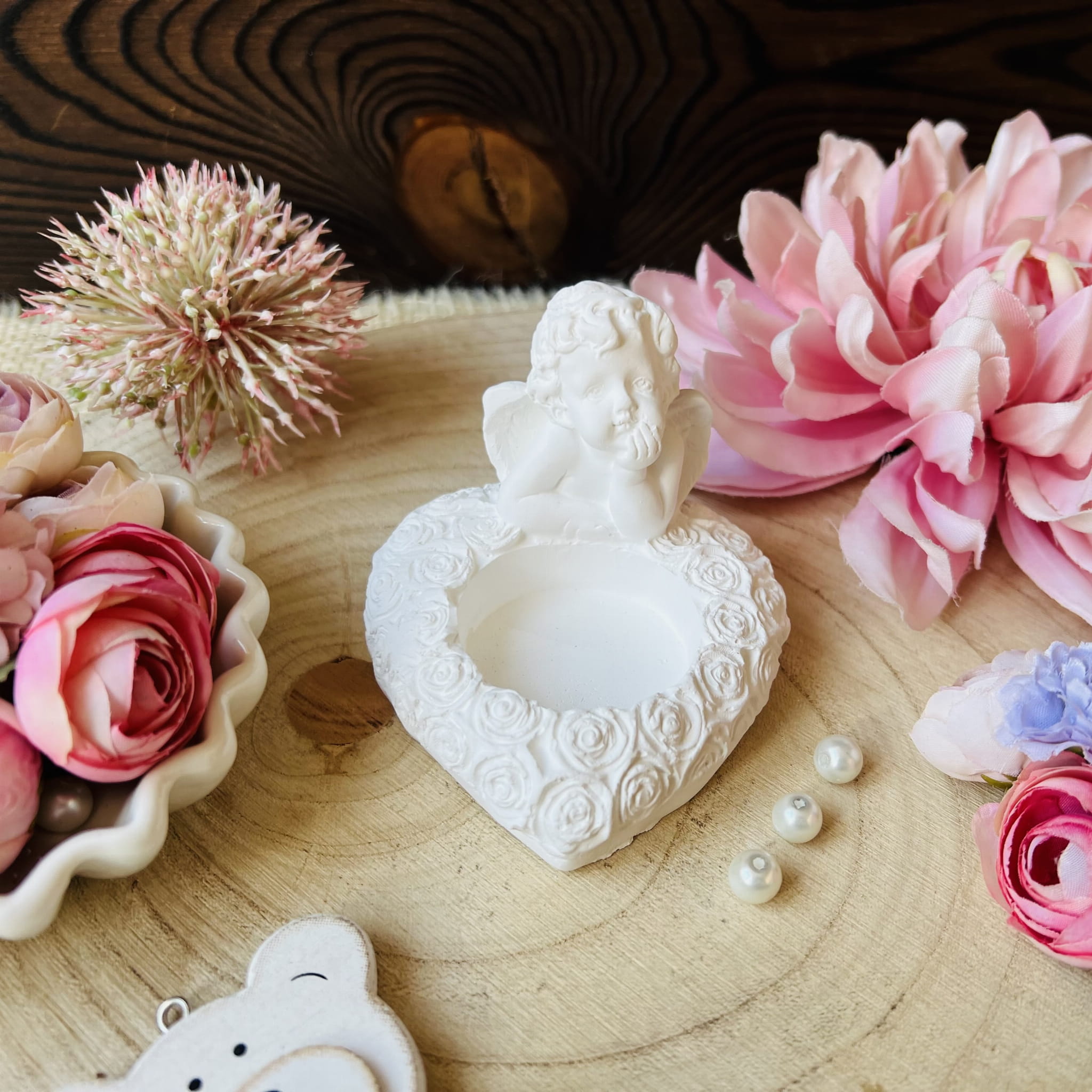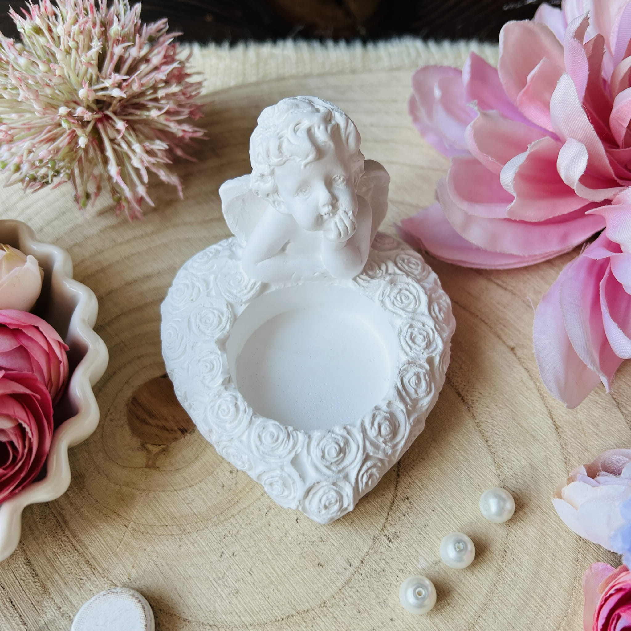 Aniołek serduszko świecznik gipsowy 6 cm