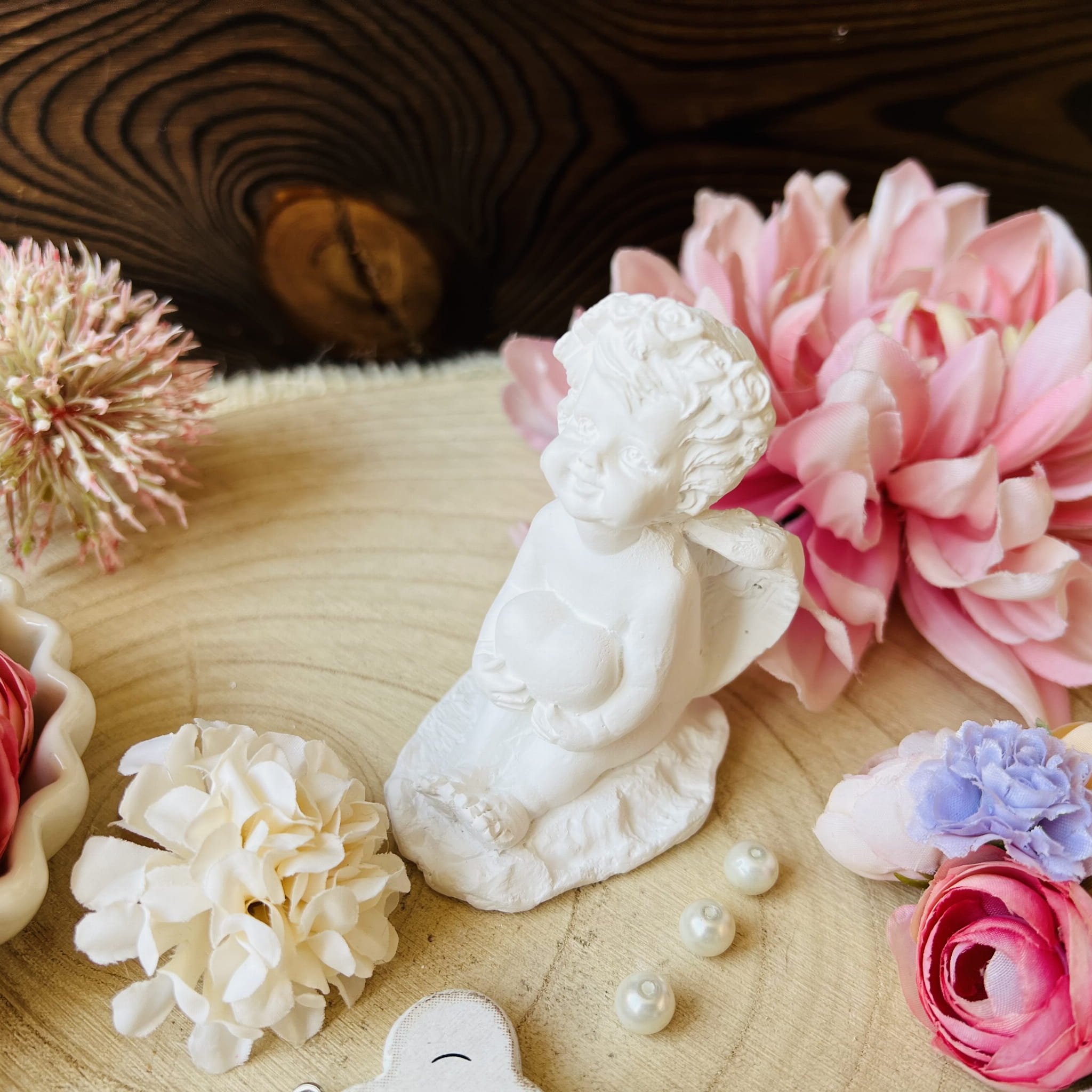 Figurka aniołka z serduszkiem gipsowy 7 cm