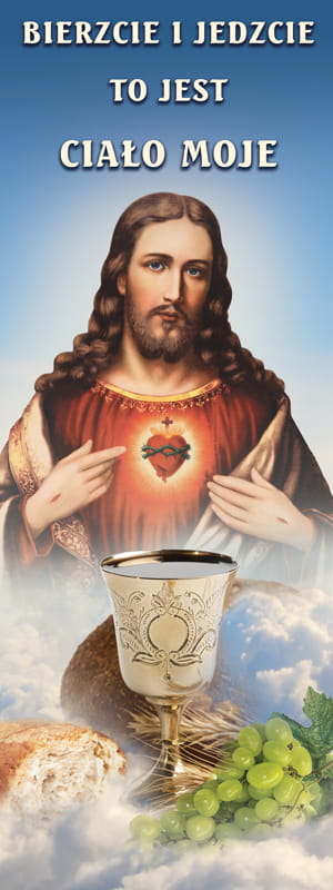 Baner na Boże Ciało "Bierzcie i jedzcie to jest ciało moje" 75x200 cm
