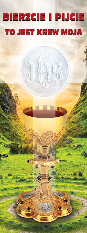 Baner na Boże Ciało "Bierzcie i pijcie to jest krew moja" 75x200 cm