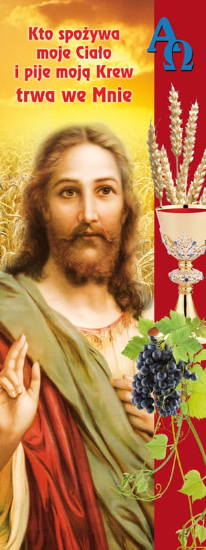Baner na Boże Ciało "Kto spożywa moje ciało i pije krew" 100x265 cm