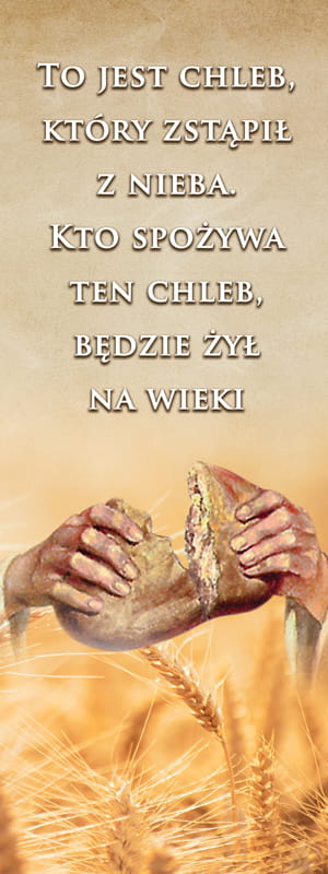 Baner na Boże Ciało "To jest chleb który zstąpił z nieba.." 75x200 cm