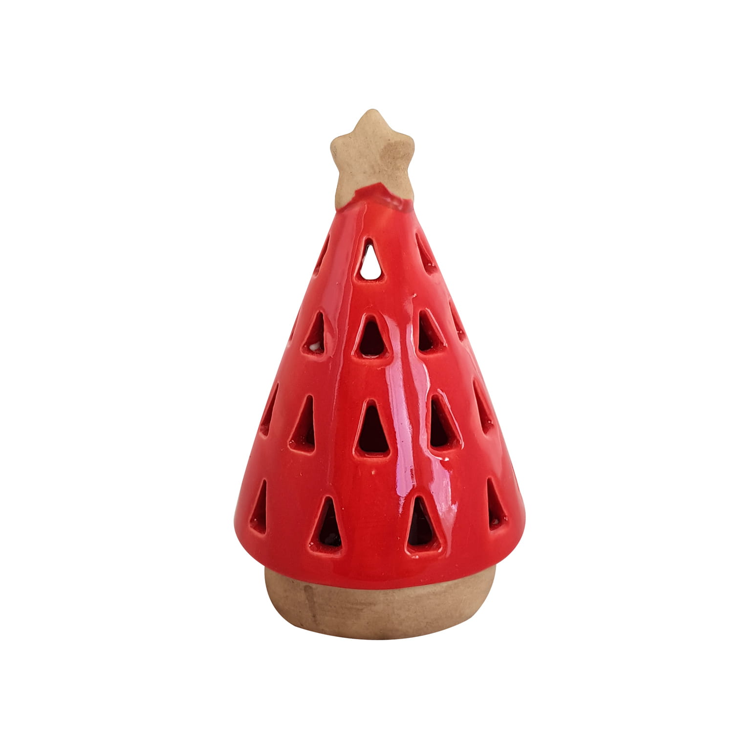 Czerwona dekoracja świąteczna choinka led z otworami przez które wydostaje się przyjemne światło.