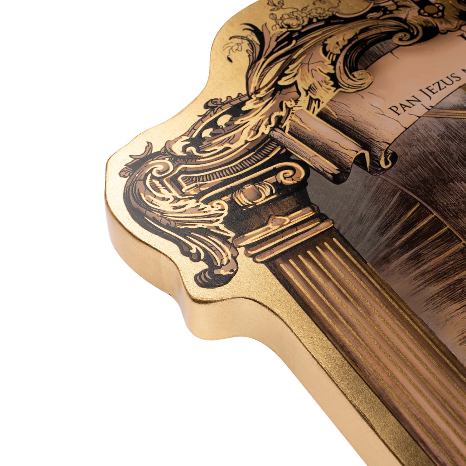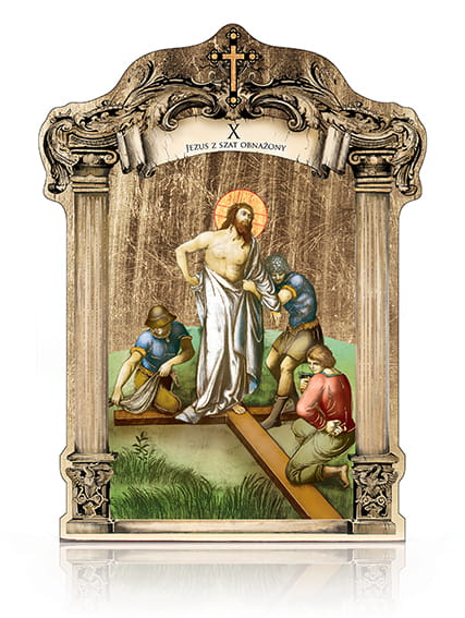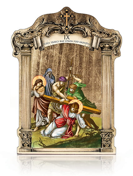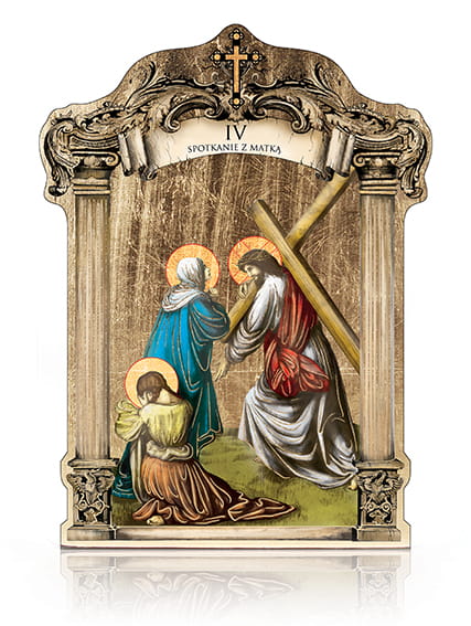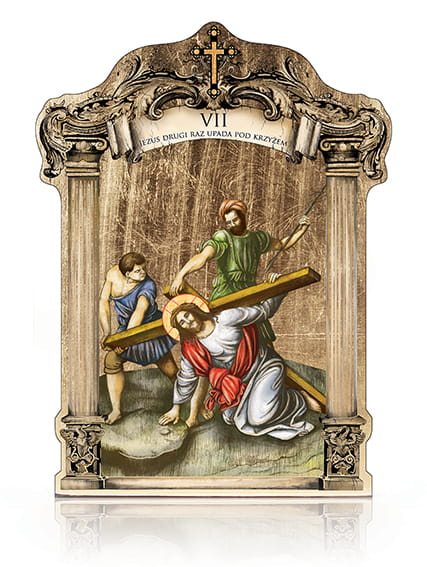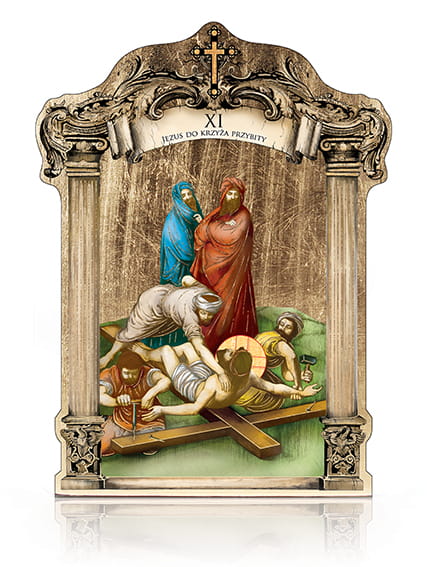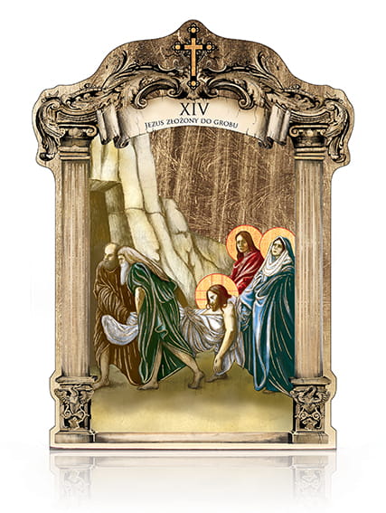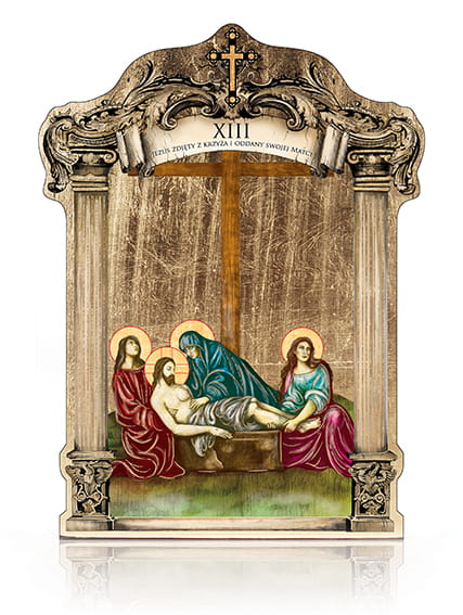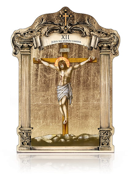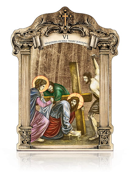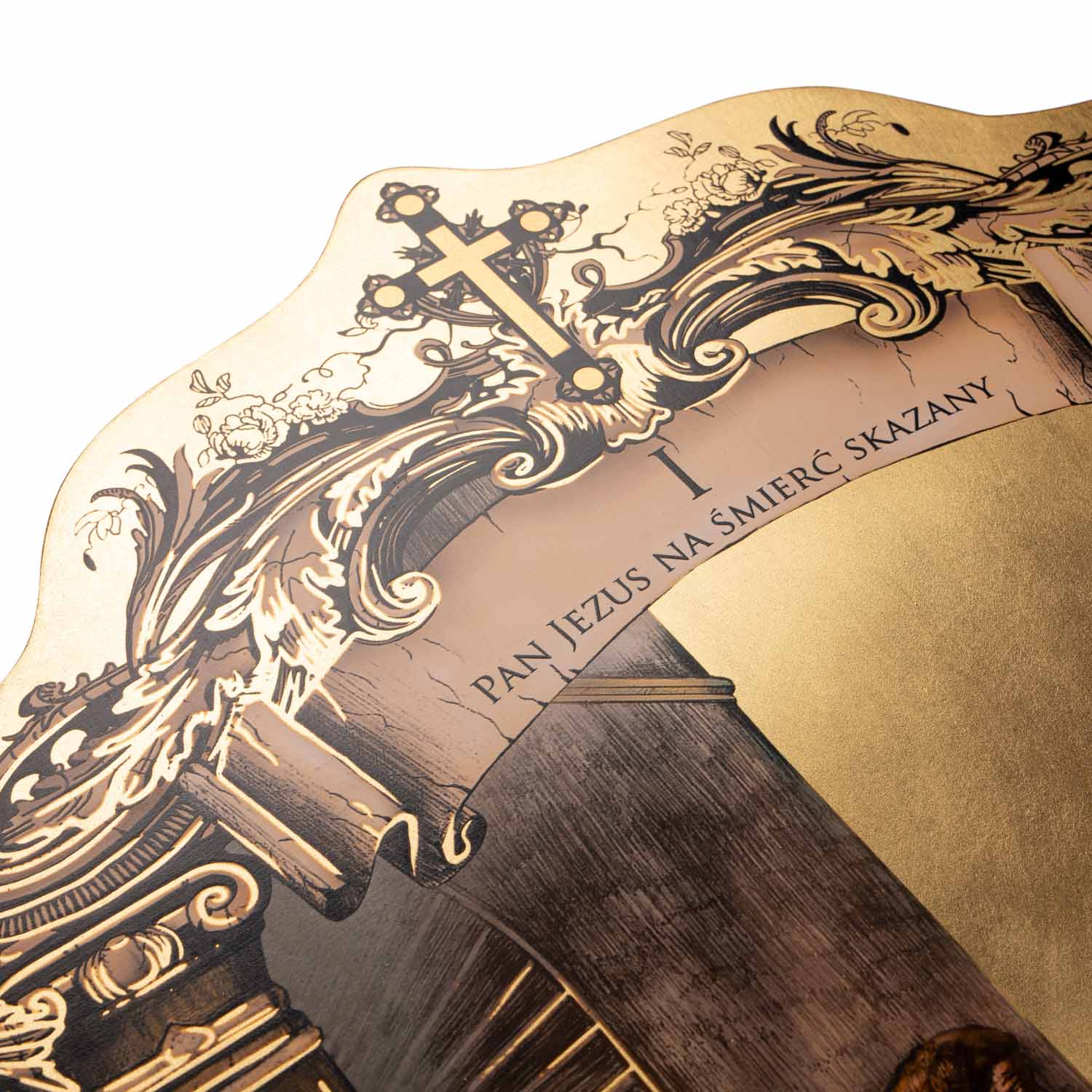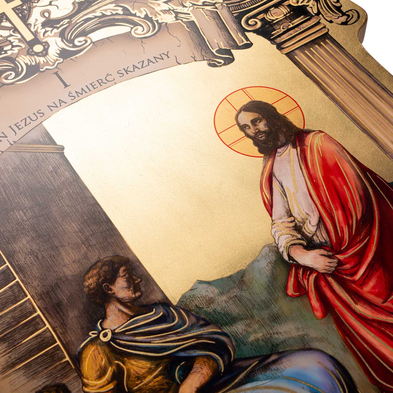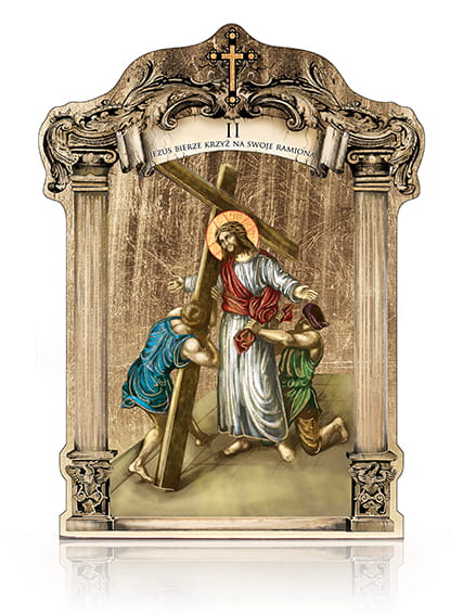 Stacje Drogi Krzyżowej przeznaczone są do ekspozycji wewnętrznej. Mogą udekorować wnętrze kościoła, kaplicy lub miejsca spotkań wiernych. Każda stacja Drogi Krzyżowej jest ręcznie wykończona, wykonana na desce olchowej, ręcznie złocona złotem płatkowym. Stacje Drogi Krzyżowej wykonane są unikalną technologią nanoszenia obrazu na drewno.
