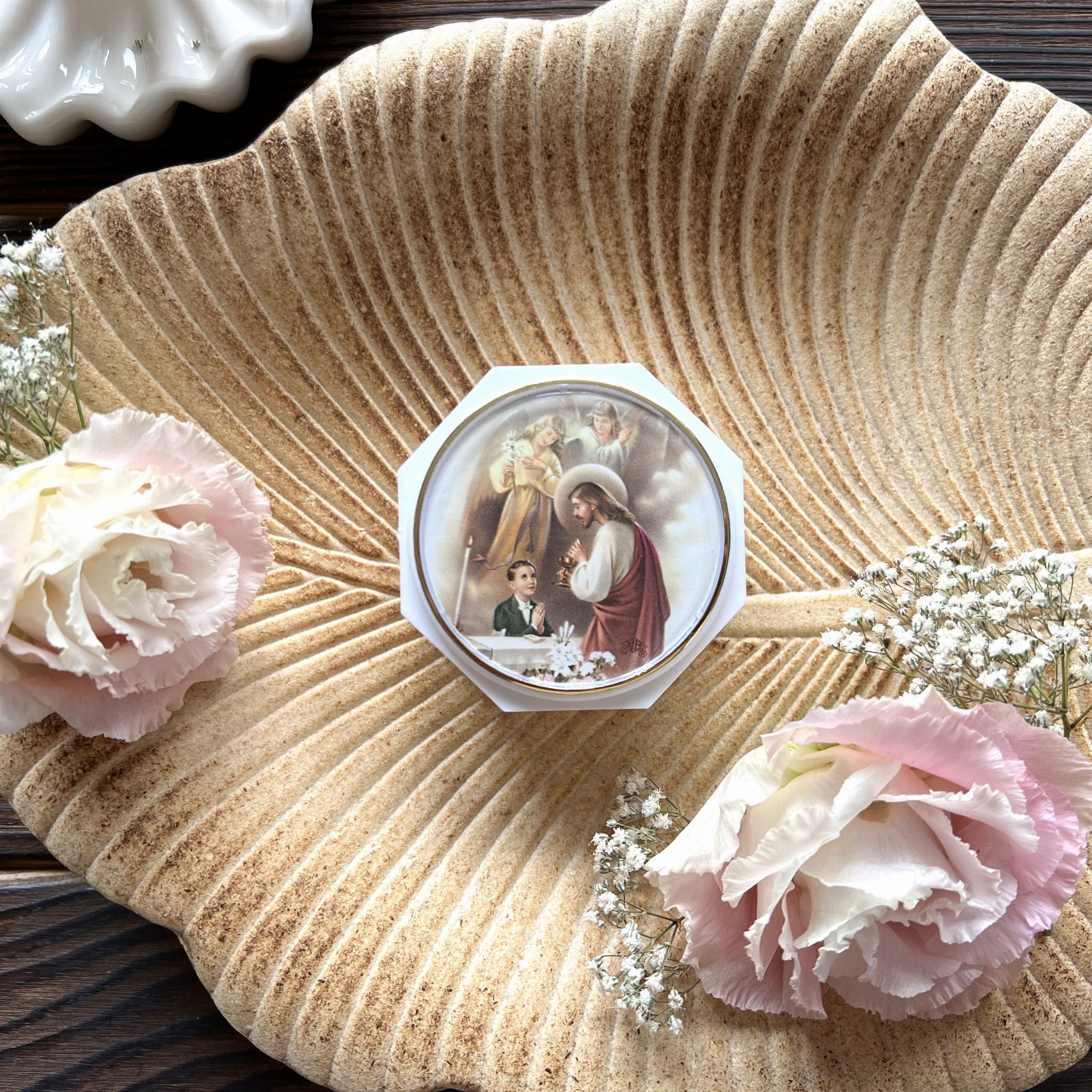 Etui na różaniec, plastikowe pudełeczko na różaniec dla chłopca, IHS