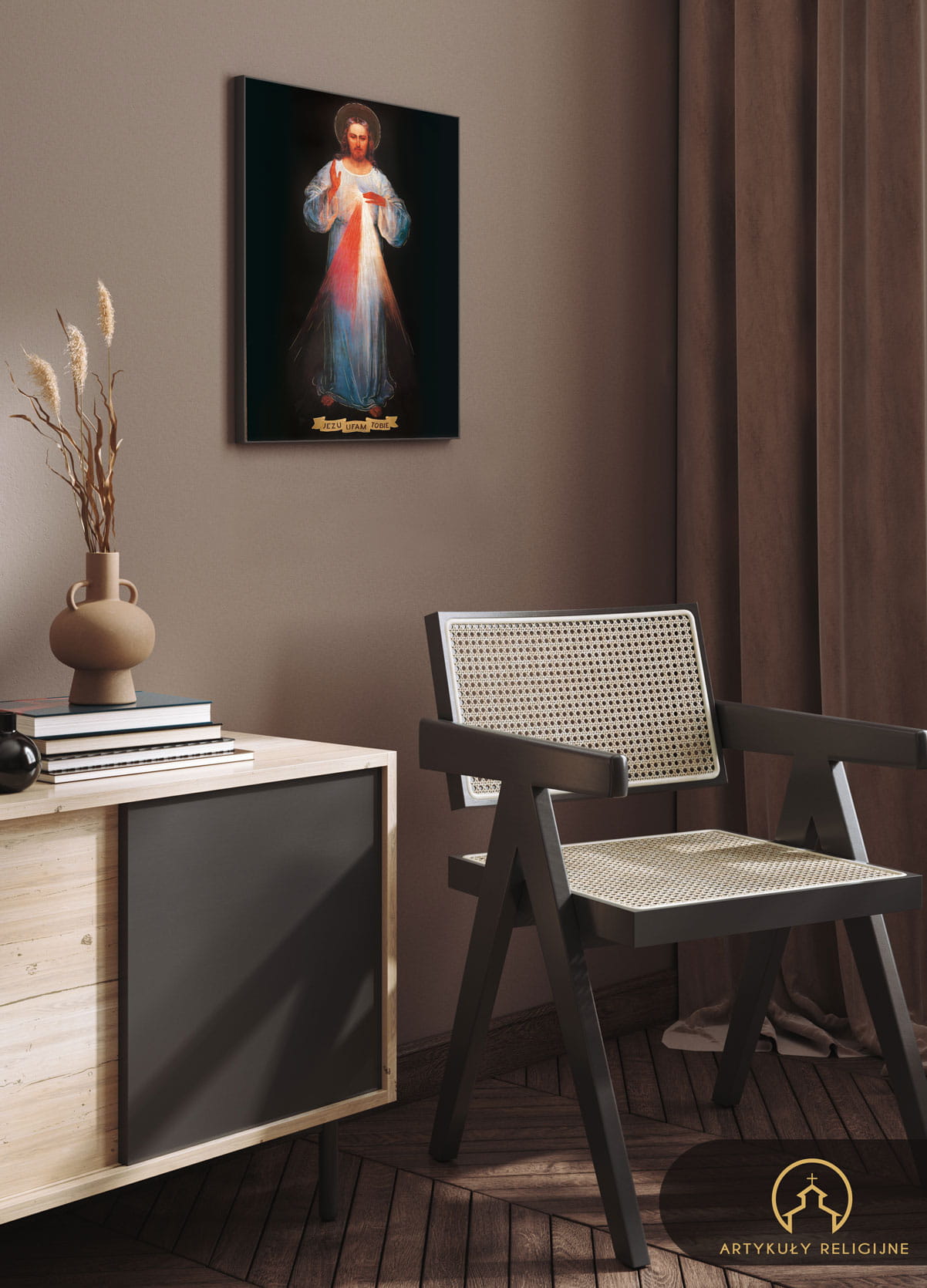 Na prezentowanej ikonie religijnej znajduje się wizerunek Jezusa Miłosiernego.