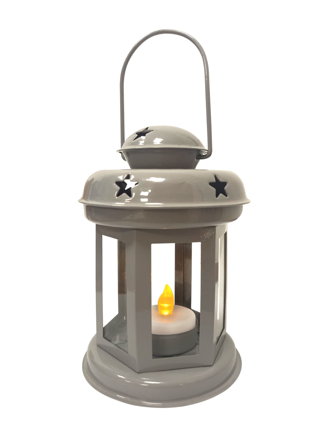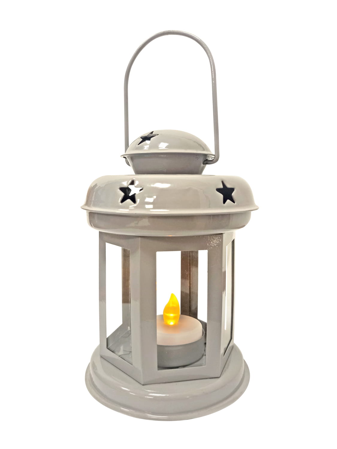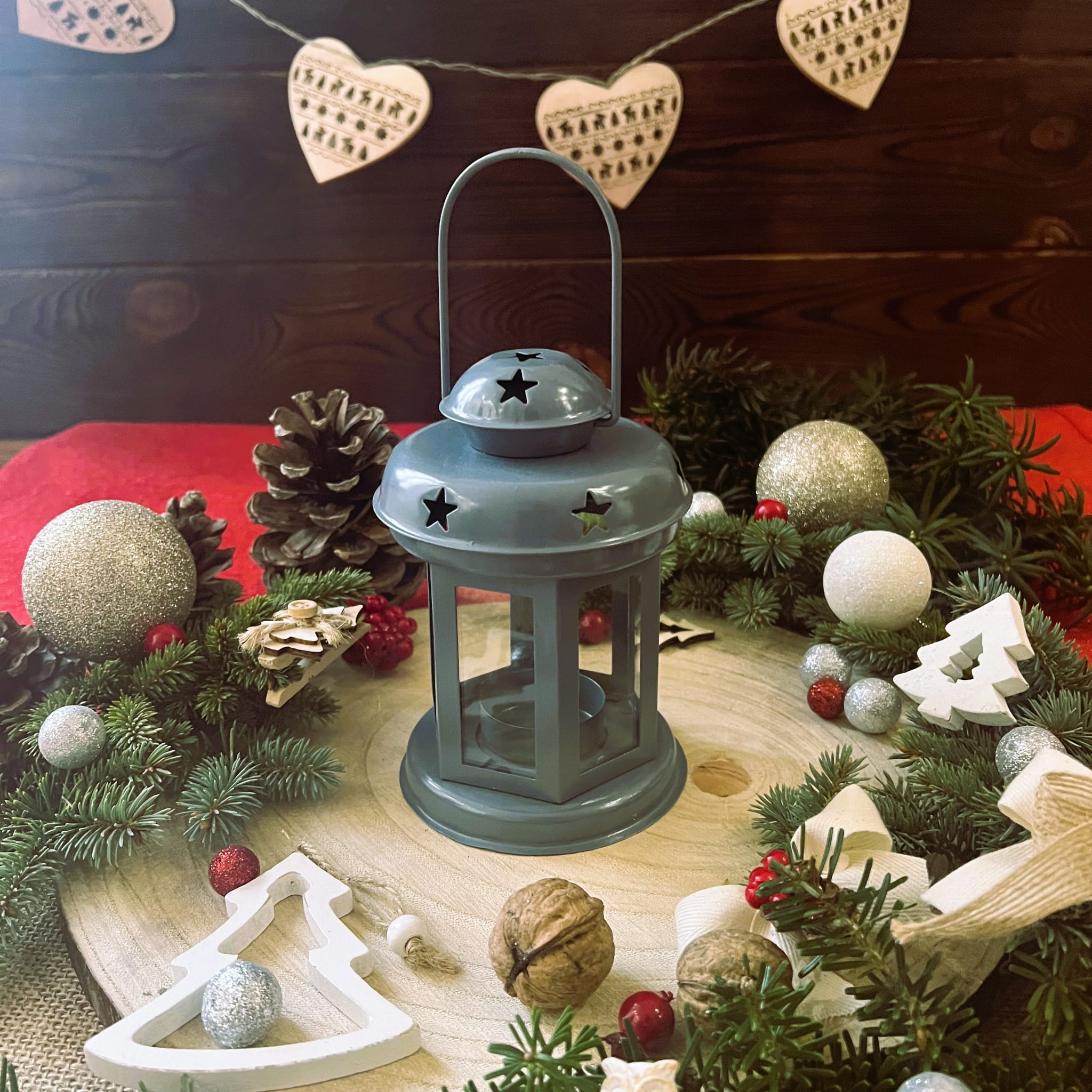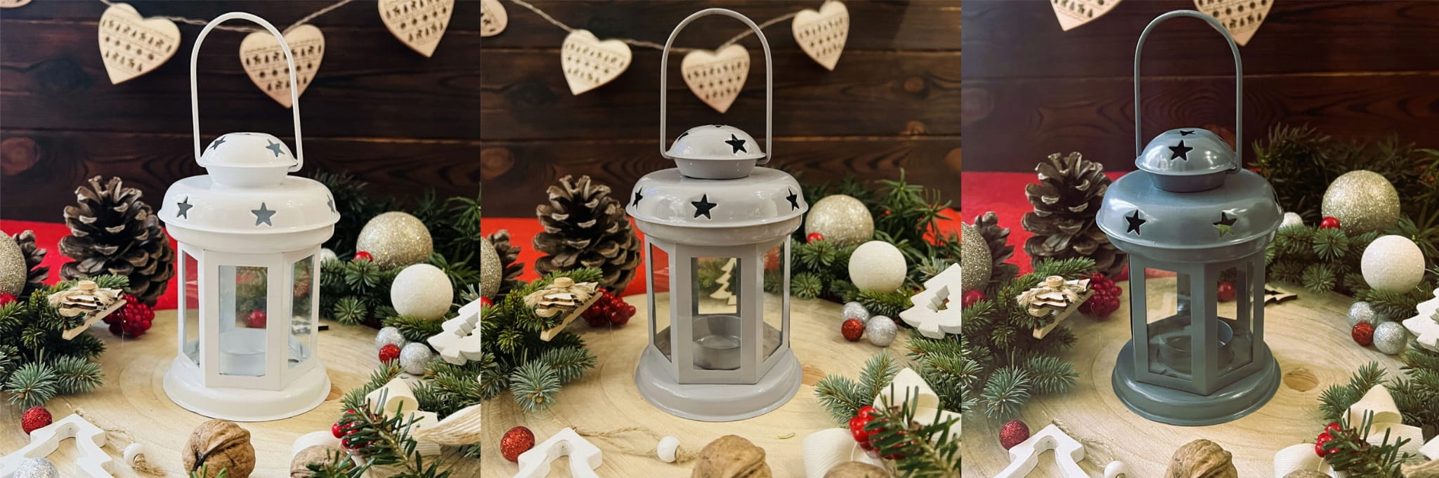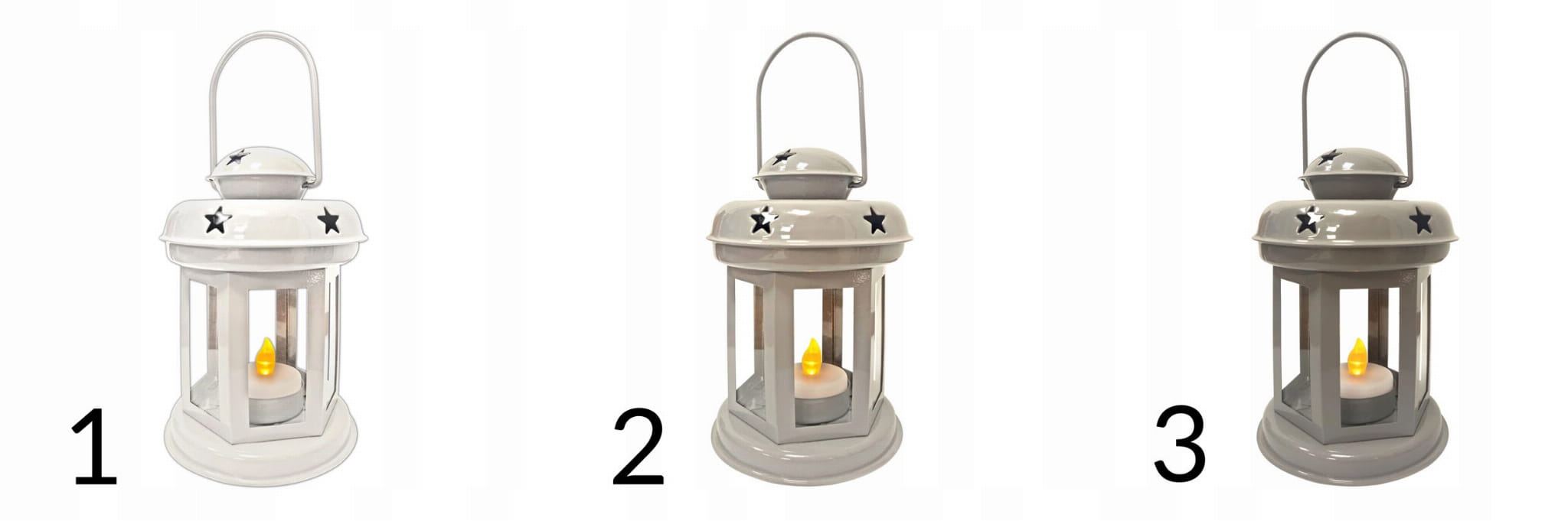 Lampion uniwersalny, świąteczna dekoracja w kolorze jasno-szarym, ciemno-szarym i białym z lampką na baterie.