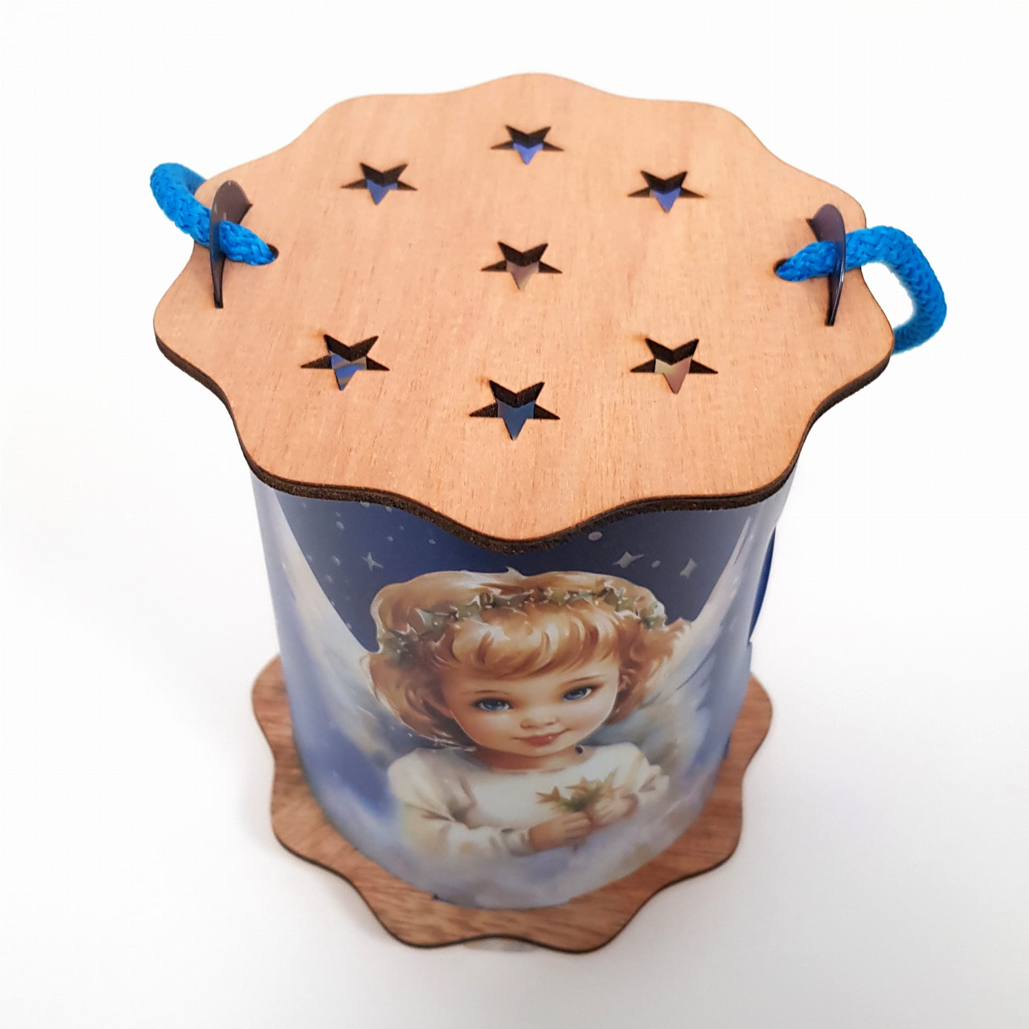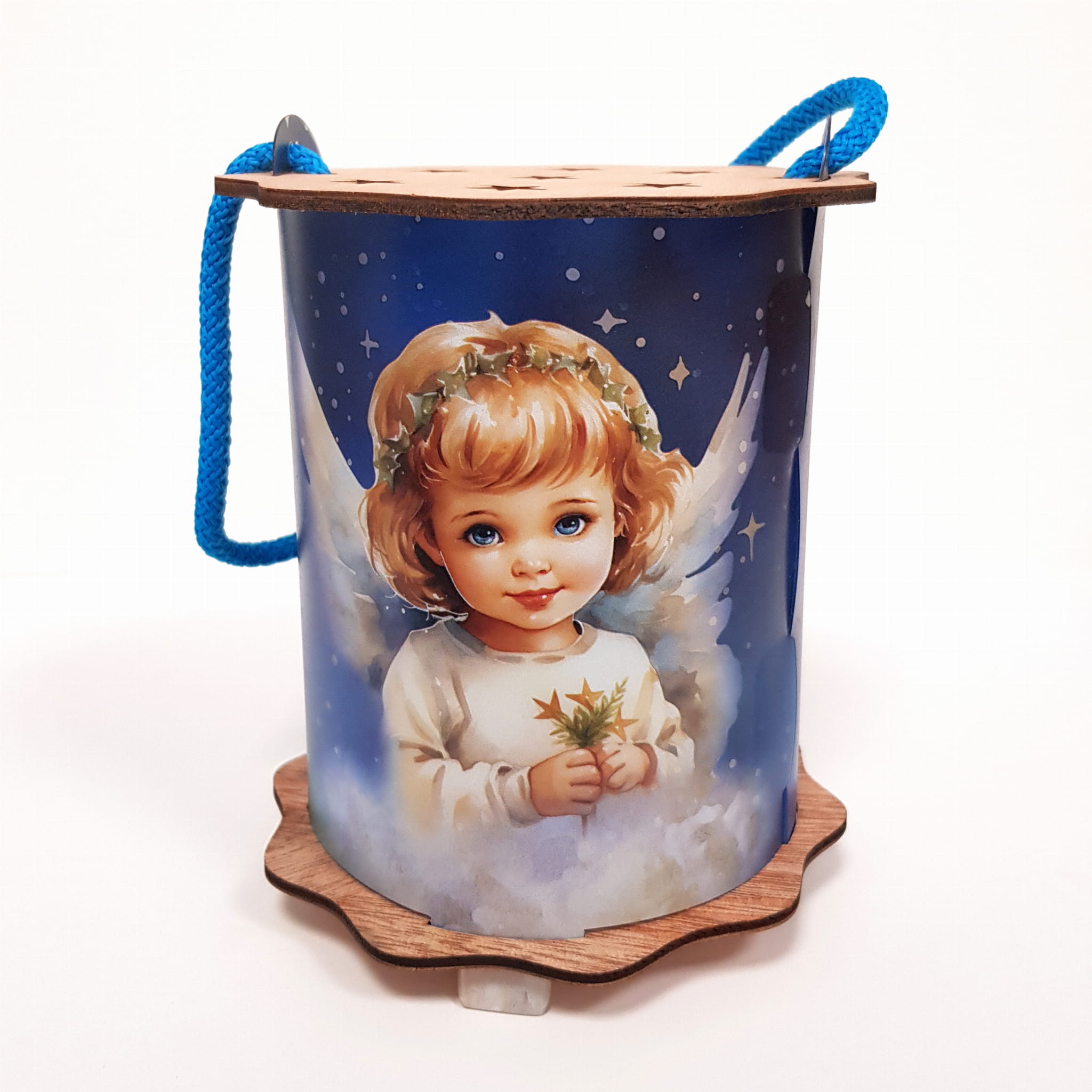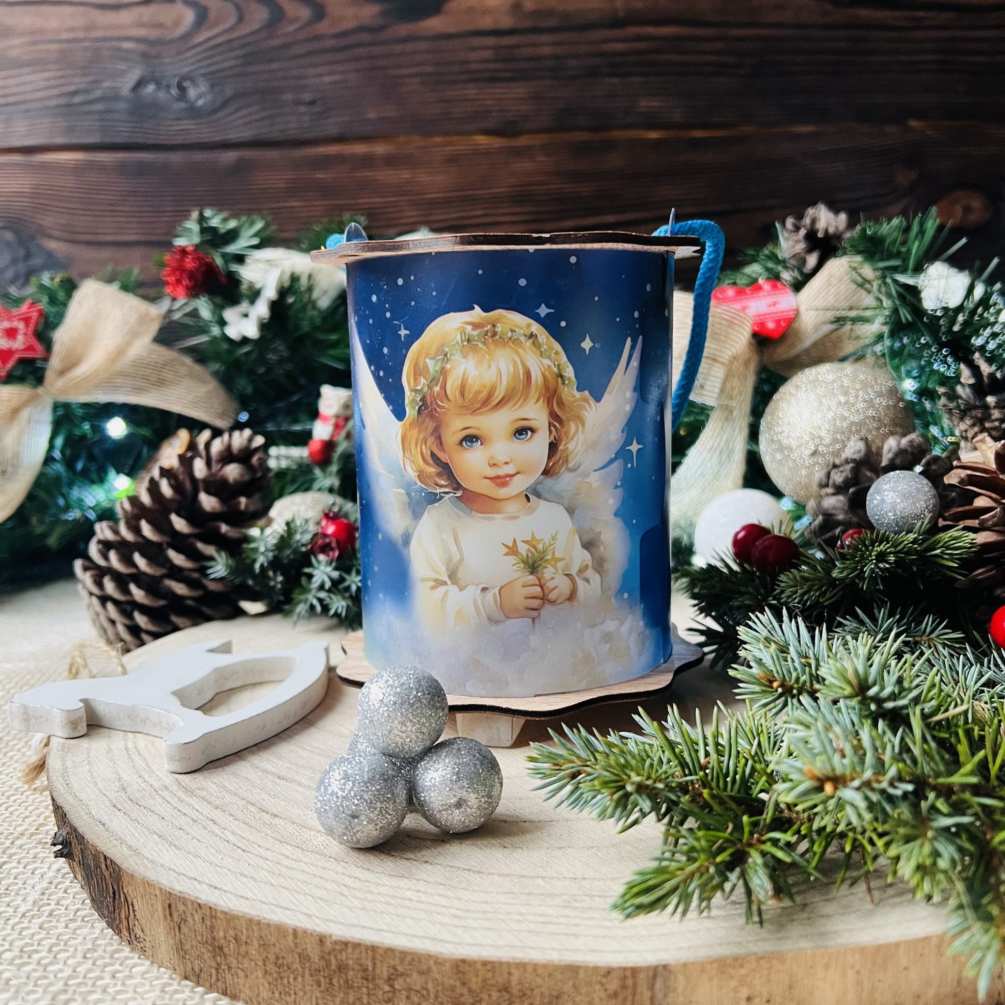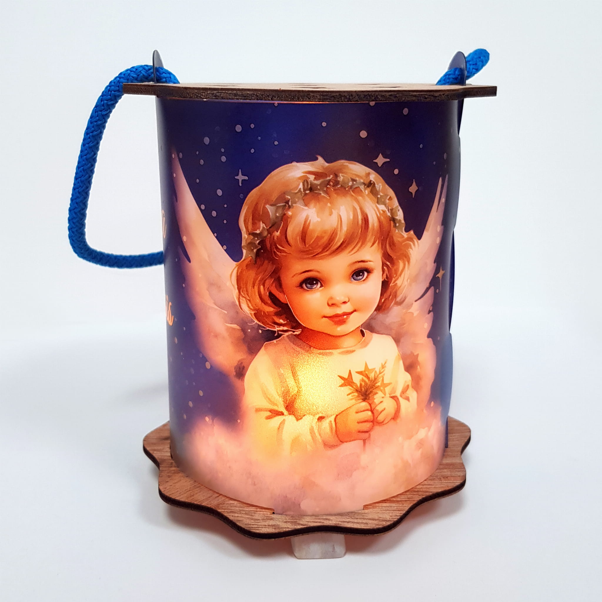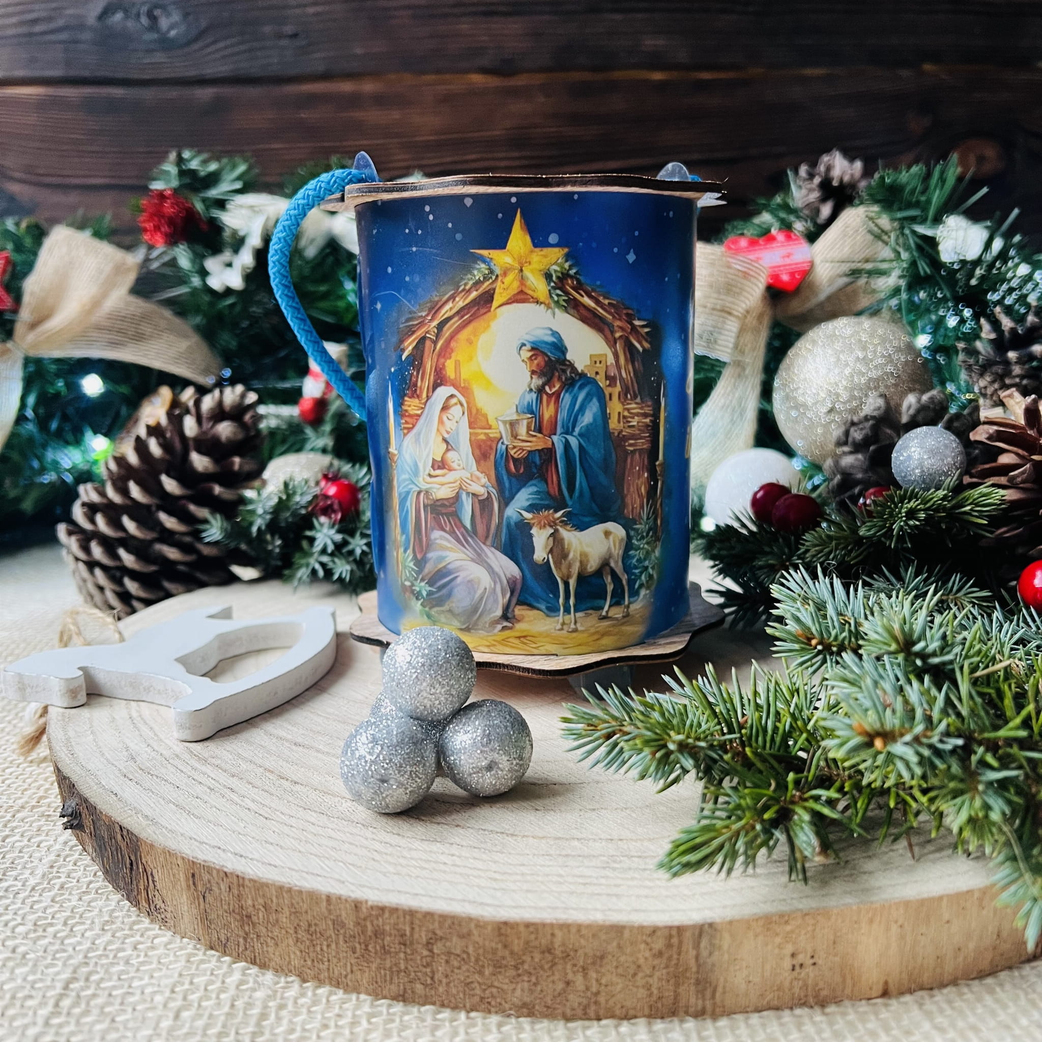 Powyższa oferta dotyczy wyjątkowego lampionu adwentowego wykonanego z drewna i tworzywa sztucznego. Wspaniała grafika umieszczona na lampionie przedstawia szopkę, aniołka i napis Gloria in excelsis deo!