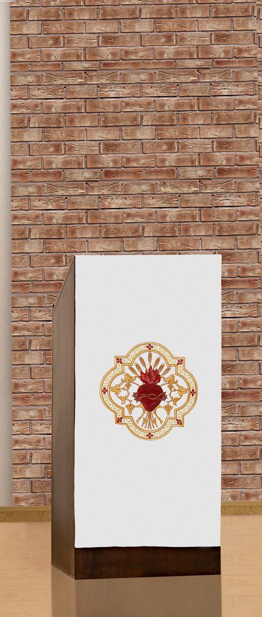 Wyjątkowej jakości serweta przeznaczona na lektorium. Wspaniały materiał oraz haftowany ręcznie wzór odnoszący się do symboliki liturgicznej - Najświętsze Serce Jezusa Chrystusa, dodają całości wyjątkowej elegancji i pięknie podkreślają lektorium.