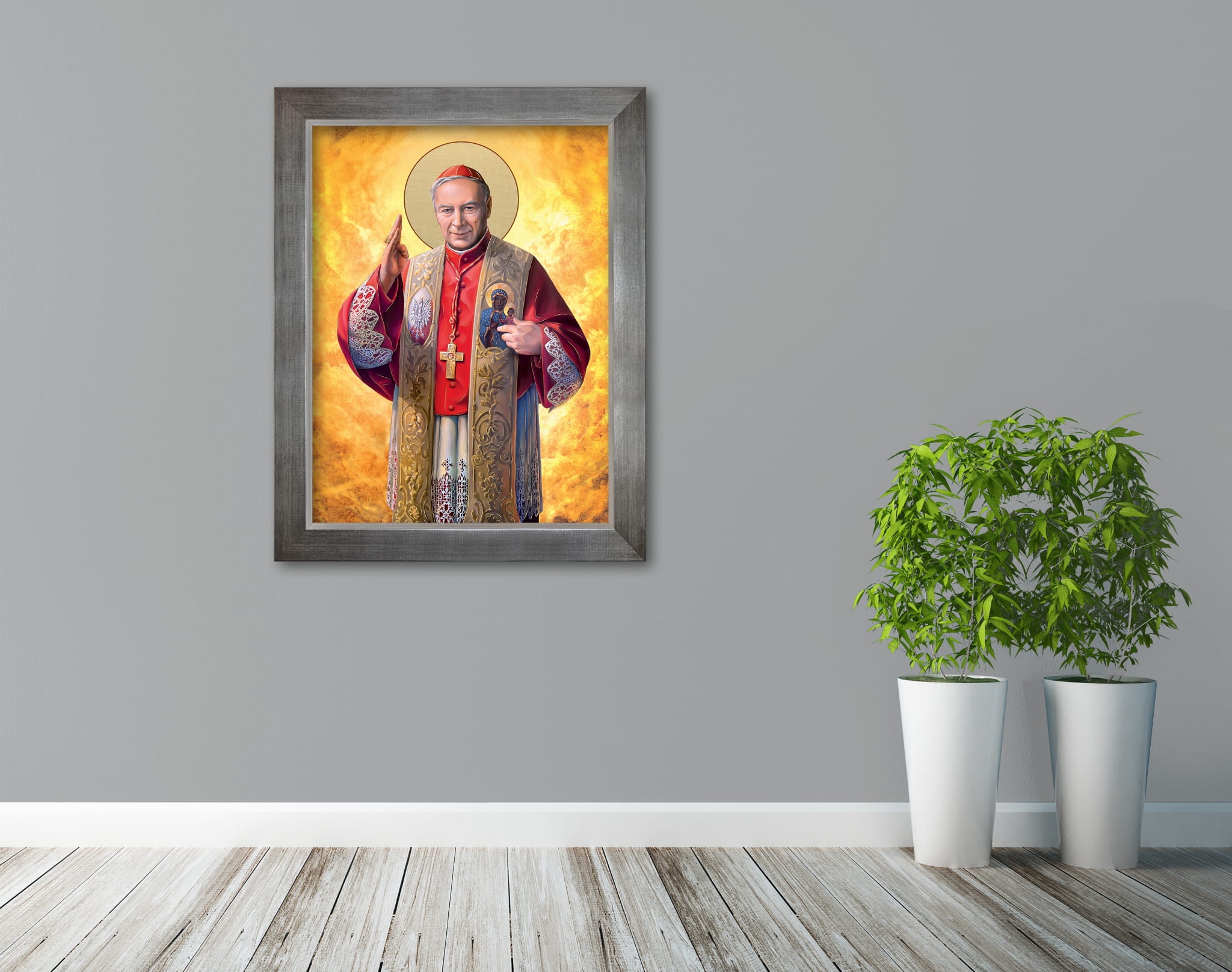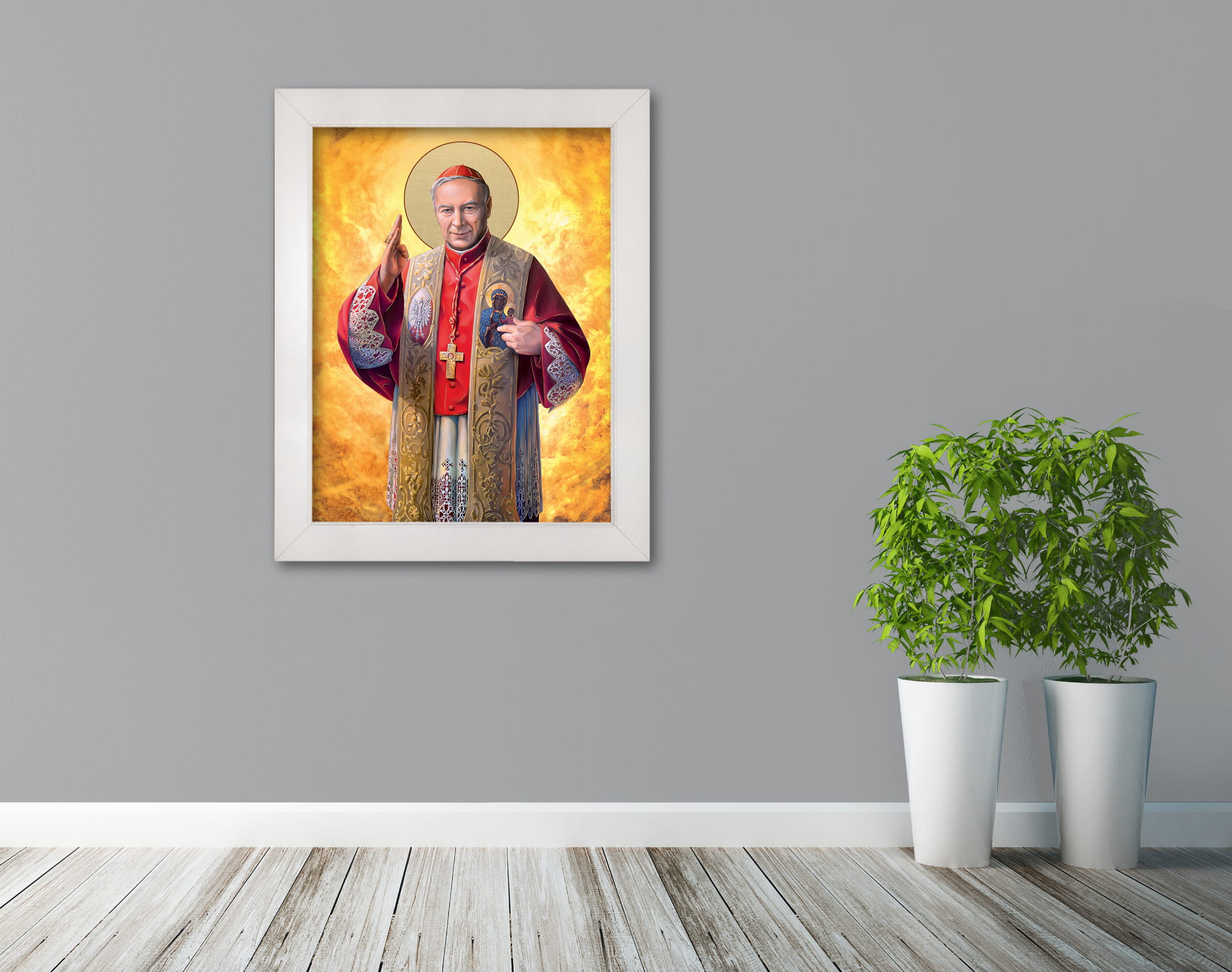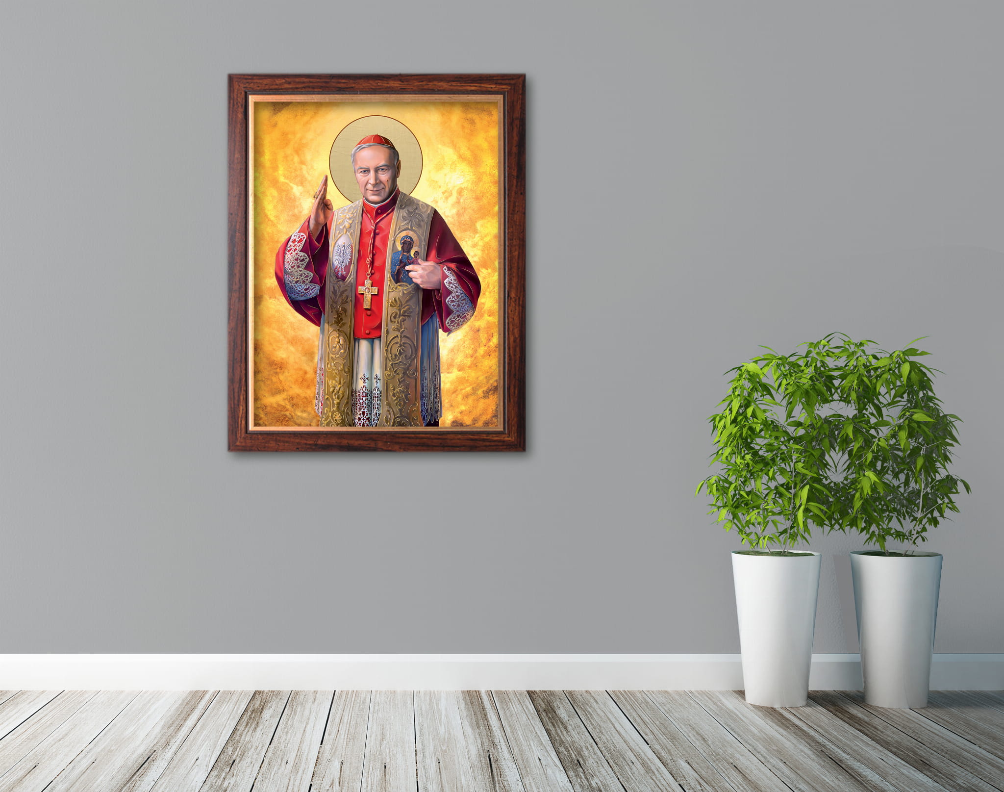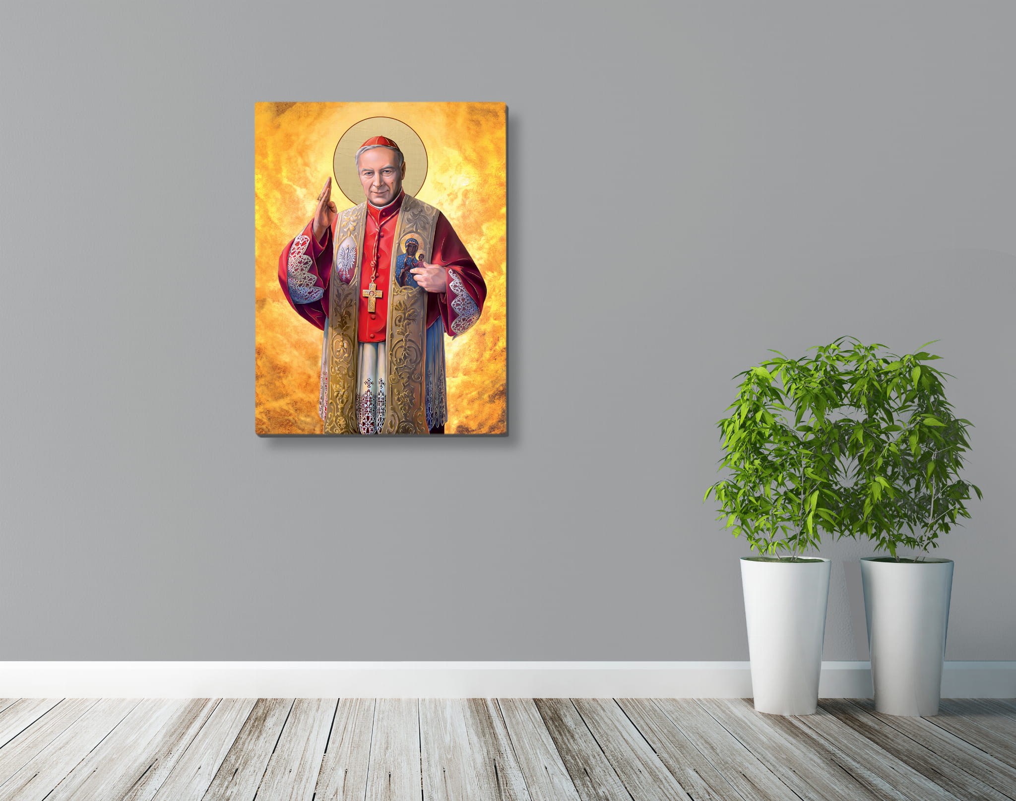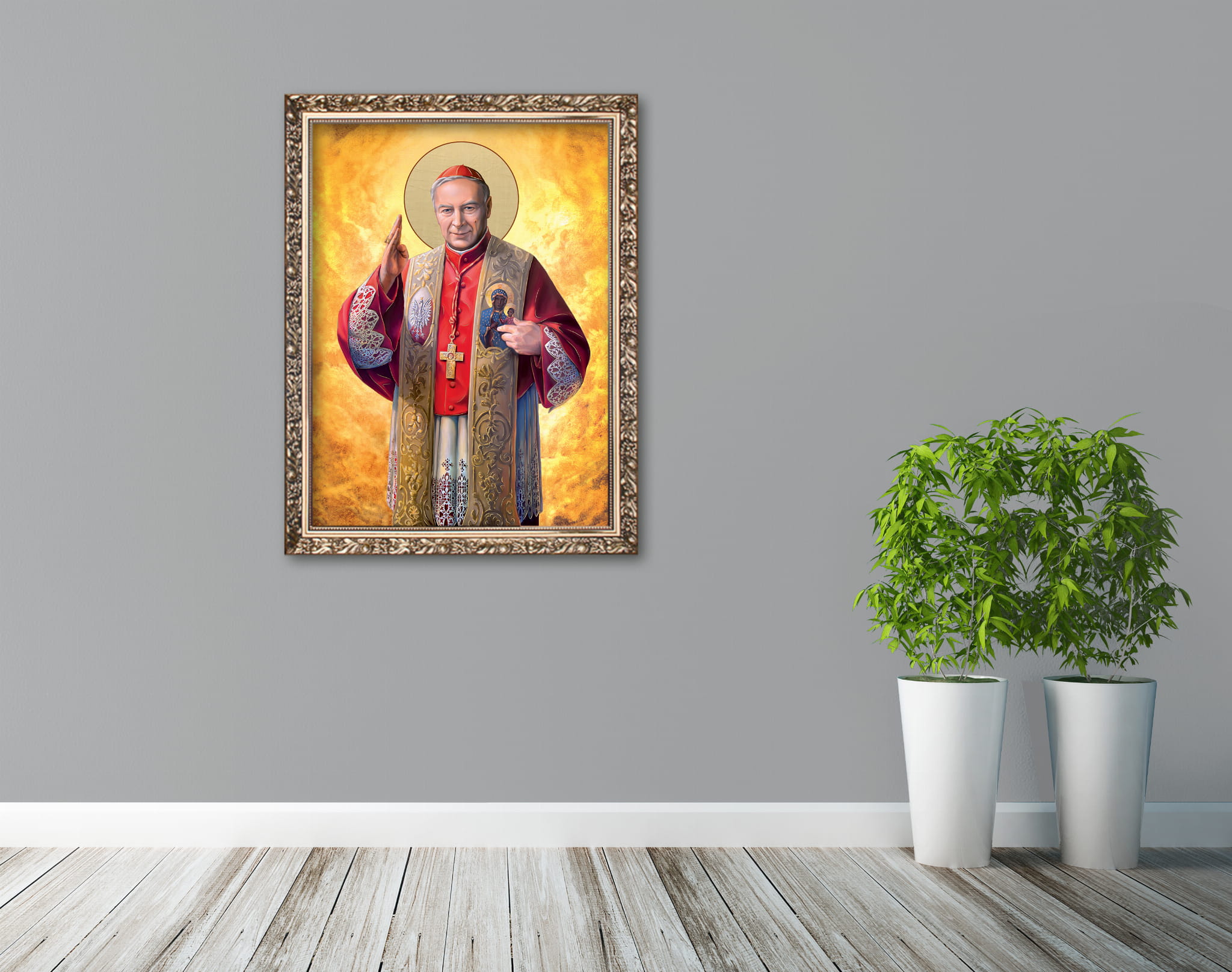 Obraz religijny na wysokiej jakości płótnie przedstawia wizerunek Błogosławionego Kardynała Stefana Wyszyńskiego.