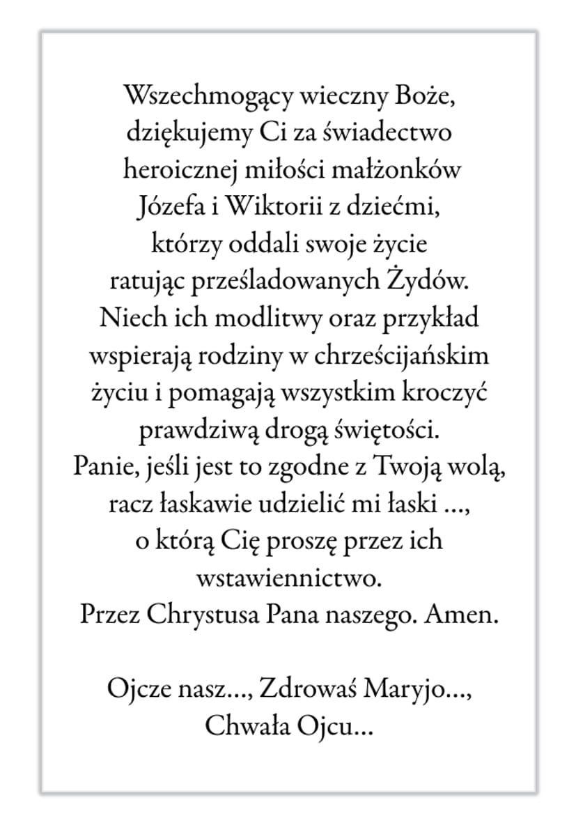 Obrazki święte i modlitwa Rodzina Ulmów