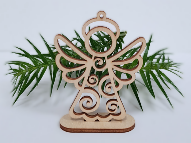 Aniołek drewniany o wyjątkowym wzorze doda uroku każdej choince, idealny do szopki jako ozdoba na stół wigilijny.