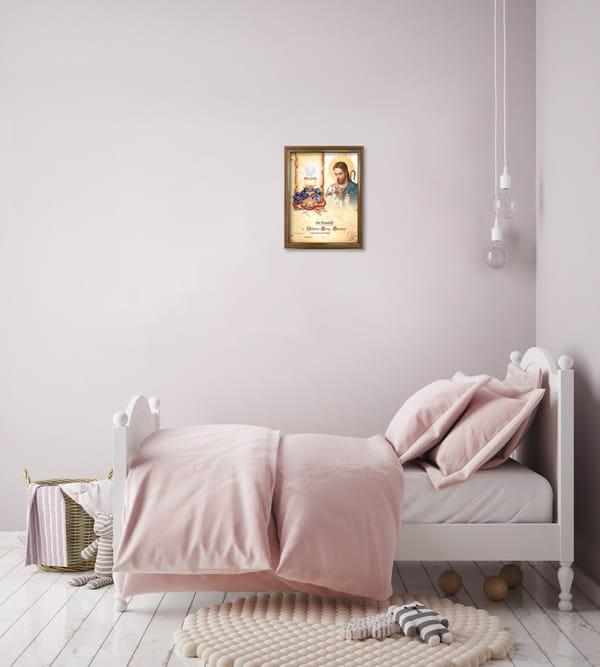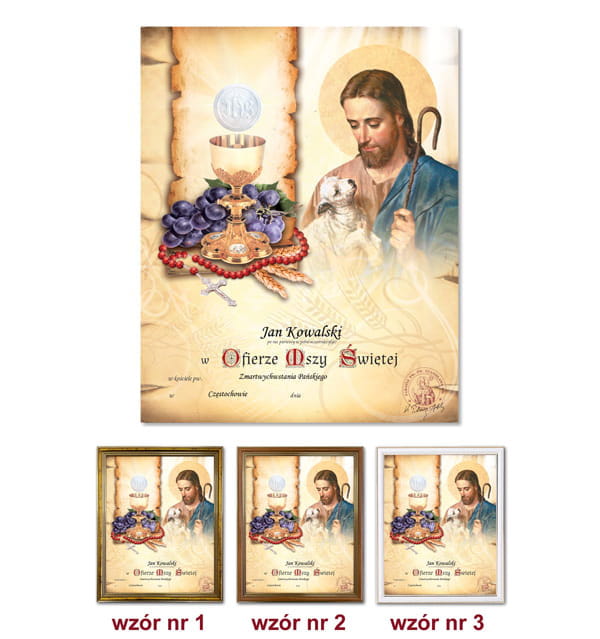 Na obrazku komunijnym znajduje się wizerunek Jezusa Chrystusa Dobrego Pasterza. Jezus Chrystus jako Dobry Pasterz jest jednym z najstarszych przedstawień Syna Bożego. Przedstawienie to pozwala ukazać wyjątkowy związek pomiędzy Pasterzem - Jezusem a owcami - wiernymi. Nasze życie będzie pełne i prawdziwe tylko wtedy gdy zawierzymy Bogu. Jezus Chrystus jest Jego źródłem i drogą, która prowadzi do celu. Pamiątka Pierwszej Komunii Świętej w formie obrazka w ramce z pełną personalizacją stanowi wyjątkowe podkreślenie i zaakcentowanie tego wyjątkowego wydarzenia w życiu każdego chrześcijanina. Każdy obrazek charakteryzuje się piękną grafiką i złoceniem.