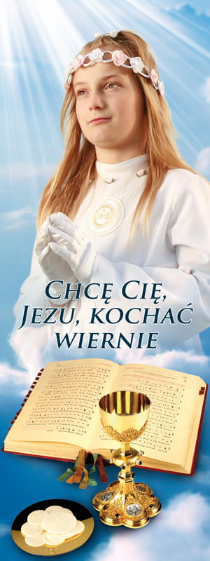 Baner na I Komunię Świętą "Chcę Cię Jezu kochać wiernie" 50x130 cm