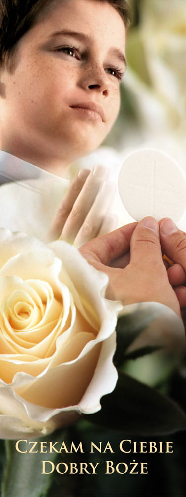 Baner na I Komunię Świętą "Czekam na Ciebie, Dobry Boże" 50x130 cm