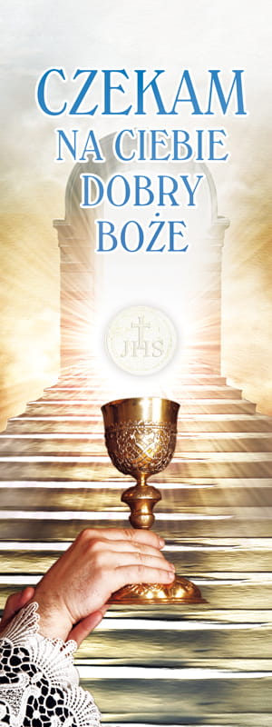 Baner na I Komunię Świętą "Czekam na Ciebie Dobry Boże" 50x130 cm