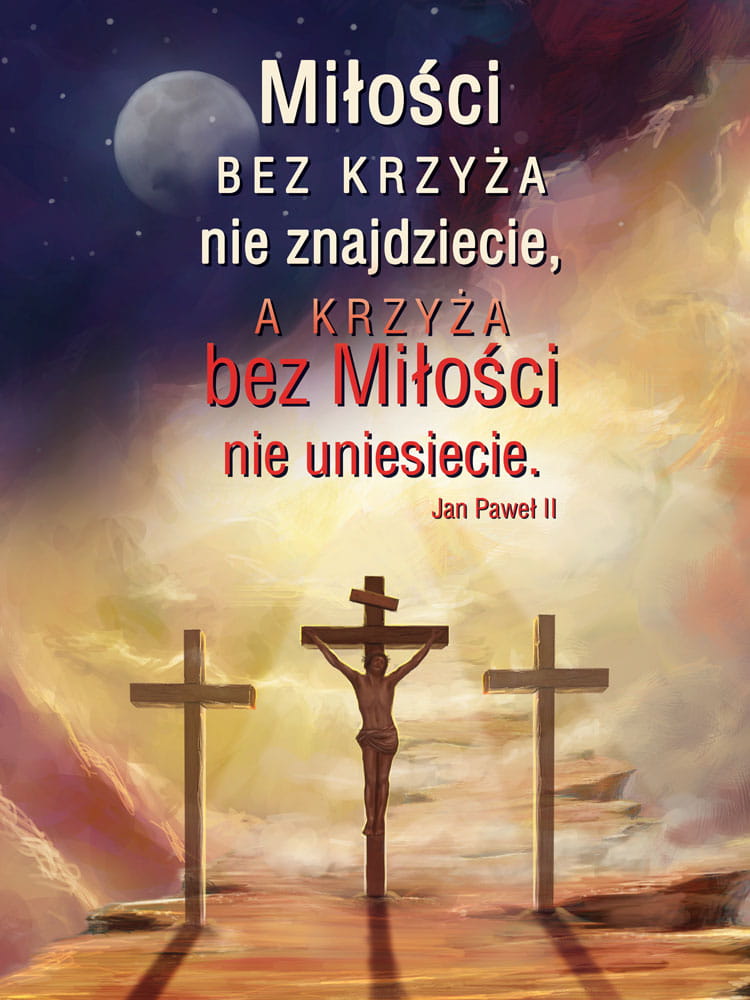 Baner na Wielki Post "Miłości bez krzyża nie znajdziecie" 75x100 cm
