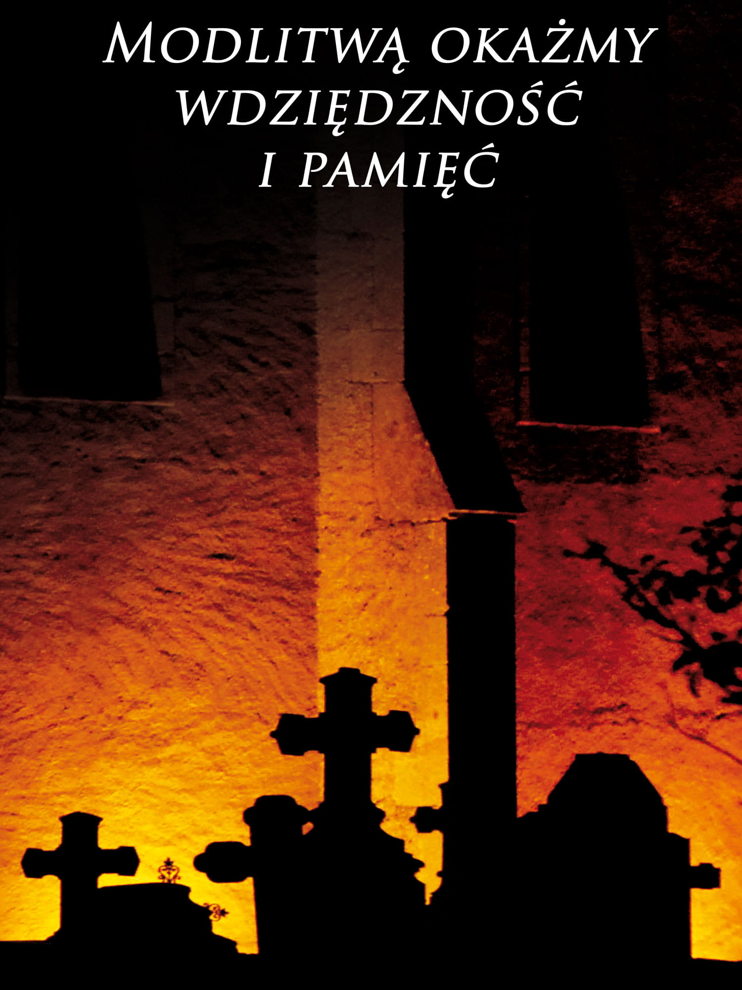 W centralnej części prezentowanego banera religijnego znajdują się Krzyże. W górnej części produktu widnieją słowa "Modlitwą okażmy wdzięczność i pamięć"