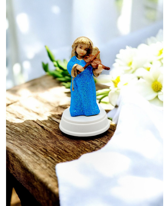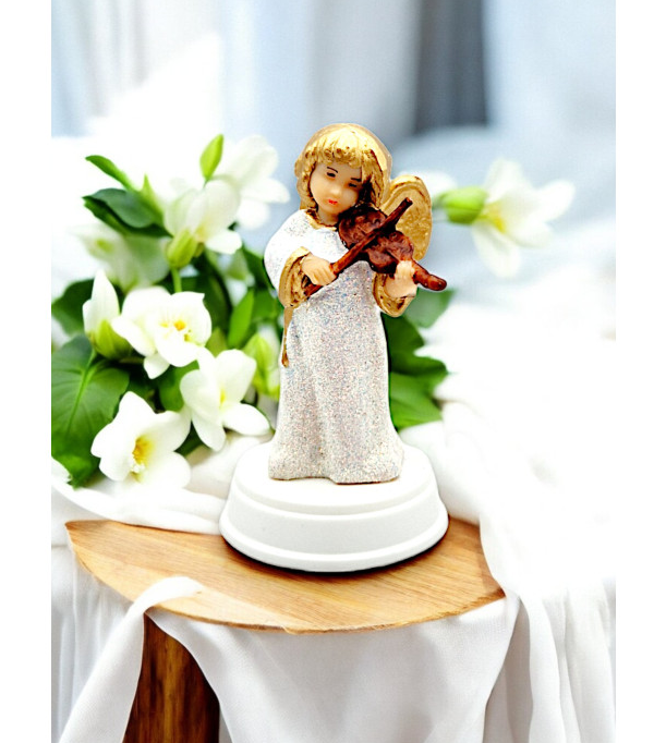 Figurka przedstawia Aniołka grającego na skrzypcach. Figurka wykonana z dbałością o każdy szczegół.