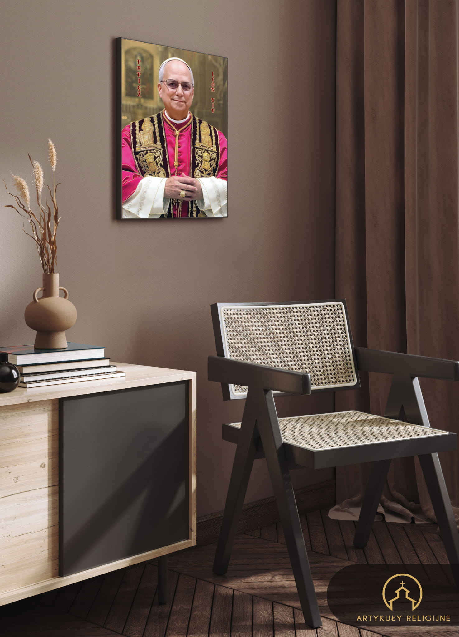 Na prezentowanej ikonie religijnej znajduje się wizerunek Papieża Leona XIV.