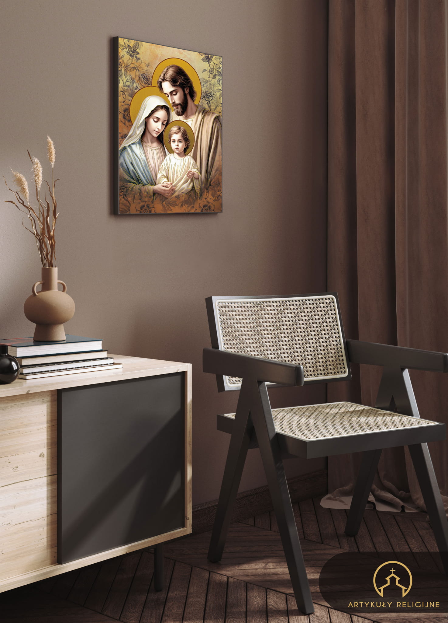 Na prezentowanej ikonie religijnej znajduje się wizerunek Świętej Rodziny.