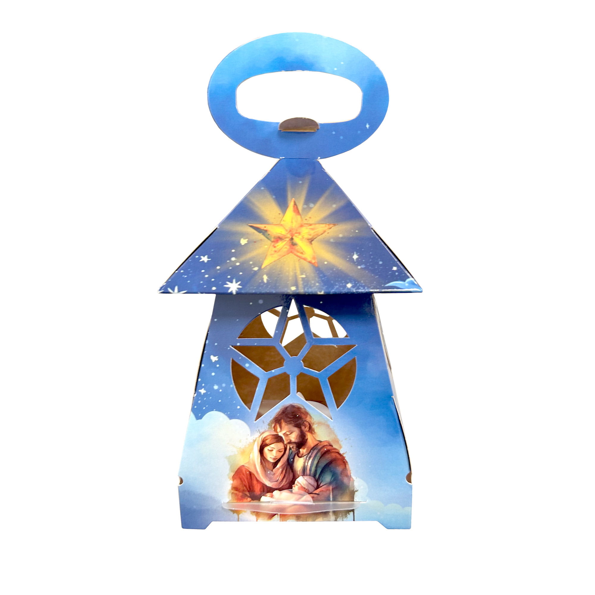Lampion adwentowy został wykonany najwyższej jakości kartonu - craft 380g. Lekkość prezentowanego modelu oraz ergonomiczny uchwyt dopasowany do dziecięcych rączek sprawiają, że każdy maluch będzie samodzielnie nosił ze sobą lampion adwentowy na codzienne roraty. Dodatkową zachętą jest wysoka estetyka wykonania – przepiękne zestawienie kolorystyczne, które oczarowuje szczególnie w momencie zapalenia lampki wewnątrz lampionu. Przepuszczające światło tworzywo to w istocie wiele kolorowych refleksów odbijających się w ciemności. Wizerunek Świętej Rodziny jest znaczącym akcentem, który może towarzyszyć dzieciom nie tylko w ciągu czterech tygodni poprzedzających Gwiazdkę, ale także może się stać subtelną i ciepłą dekoracją bożonarodzeniową pokoju.