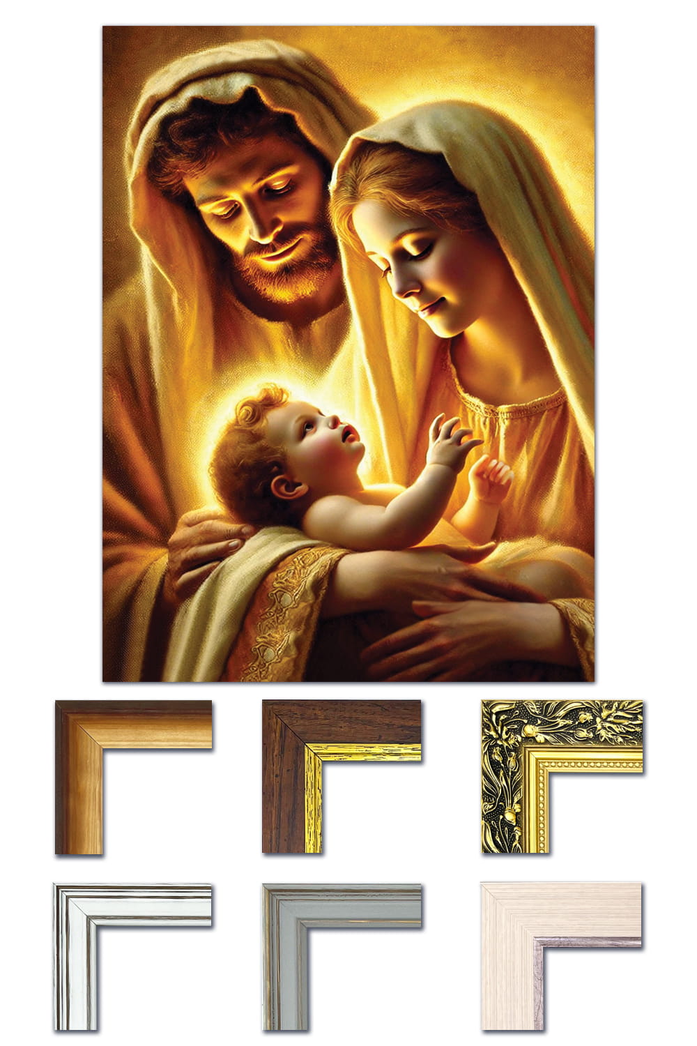 Dostępne w naszej ofercie obrazy religijne cechują się estetycznym wykonaniem, wspaniałą gamą kolorystyczną, ostrością detali i wyjątkową kompozycją. Wydruk wizerunków umożliwia otrzymanie wiernych i trwałych kopii, a szeroki wybór rozmiarów oraz różne formy oprawy sprawiają, że każdy klient może skomponować produkt dokładnie odpowiadający jego preferencjom i potrzebom. W ofercie posiadamy obrazy religijne w ramach drewnianych zachwycające swoją subtelnością, zdobione złotym paskiem oraz te bogato zdobione z imponującym ornamentem.