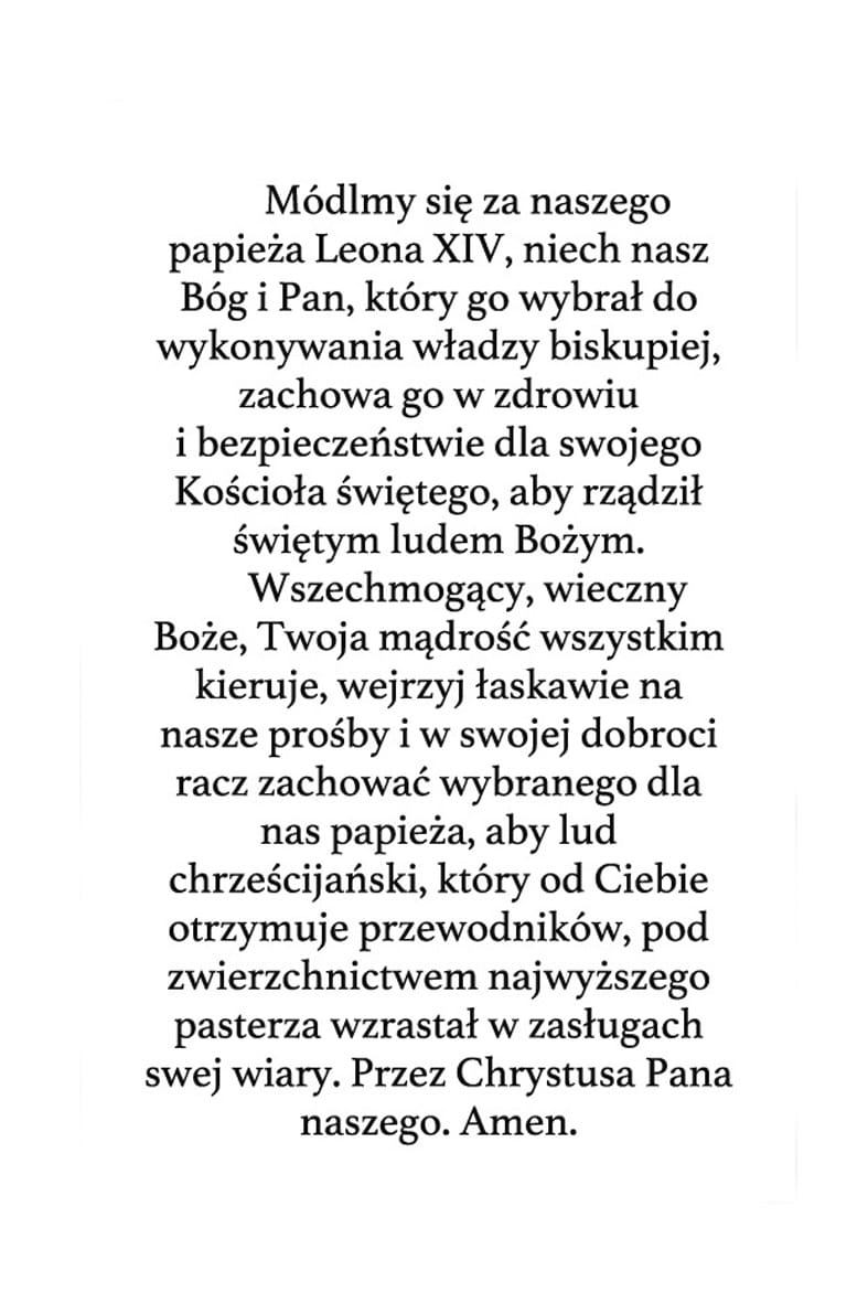 Obrazki religijne z modlitwą za Papieża Leona XIV