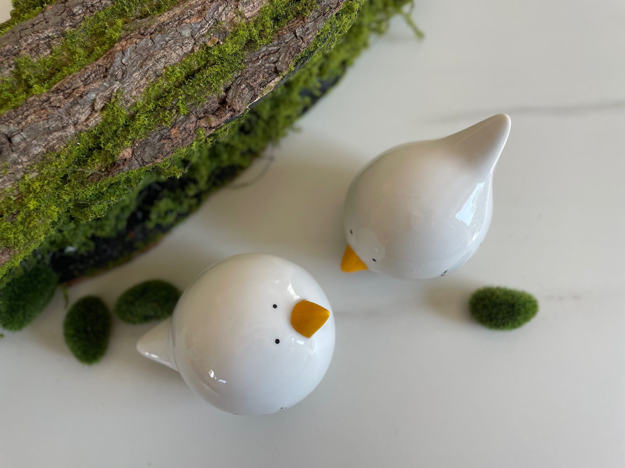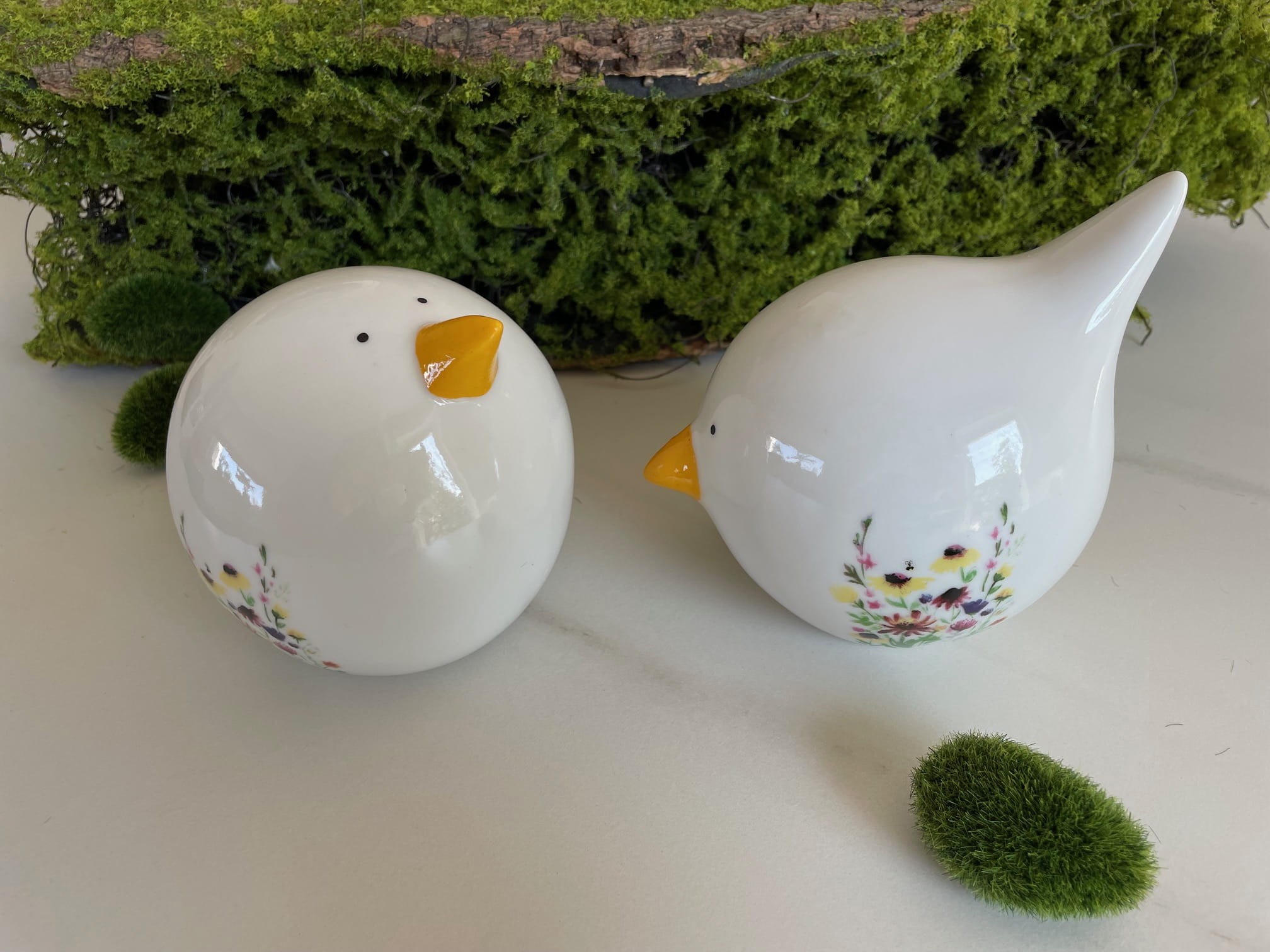 Dodaj odrobinę subtelnego uroku do swojej wiosennej lub wielkanocnej aranżacji dzięki zestawowi dwóch porcelanowych ptaszków. Proste, eleganckie kształty w połączeniu z delikatnym, kwiatowym zdobieniem sprawiają, że figurki będą pięknie prezentować się na stole, półce, w stroiku lub jako element dekoracji okiennej.