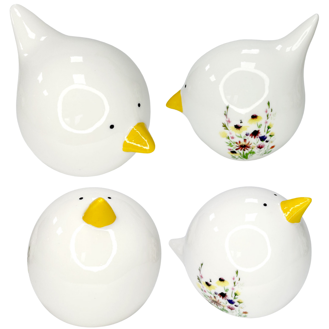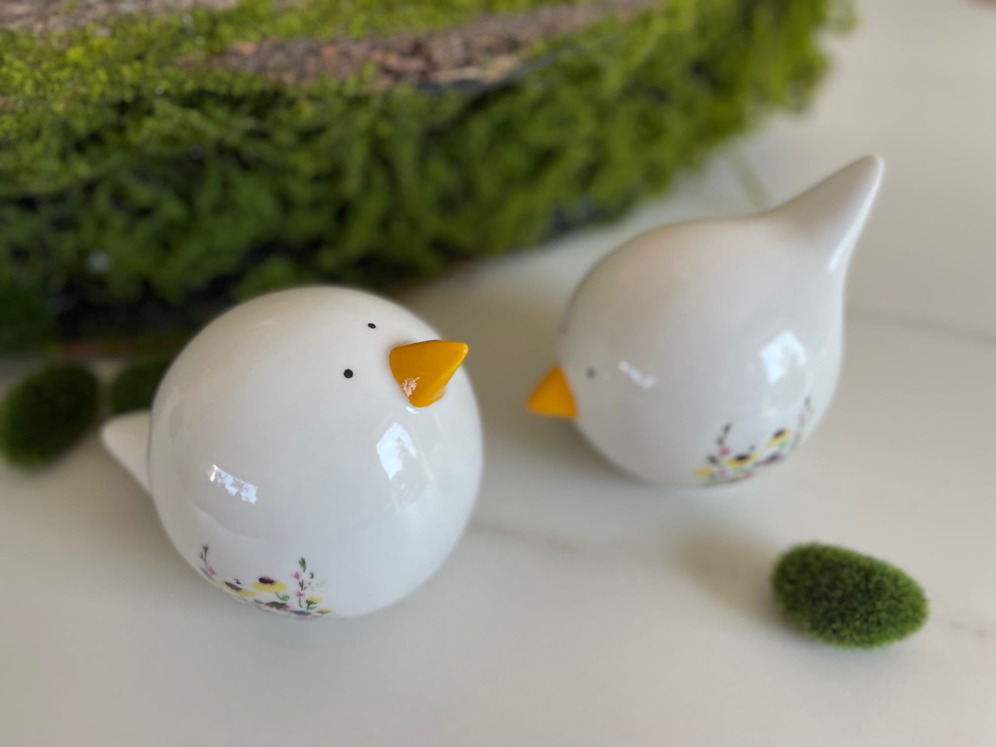 Figurka Ptaszek Porcelanowy 10x13 cm – Wielkanocna Ozdoba Kwiatowa – 2 sztuki