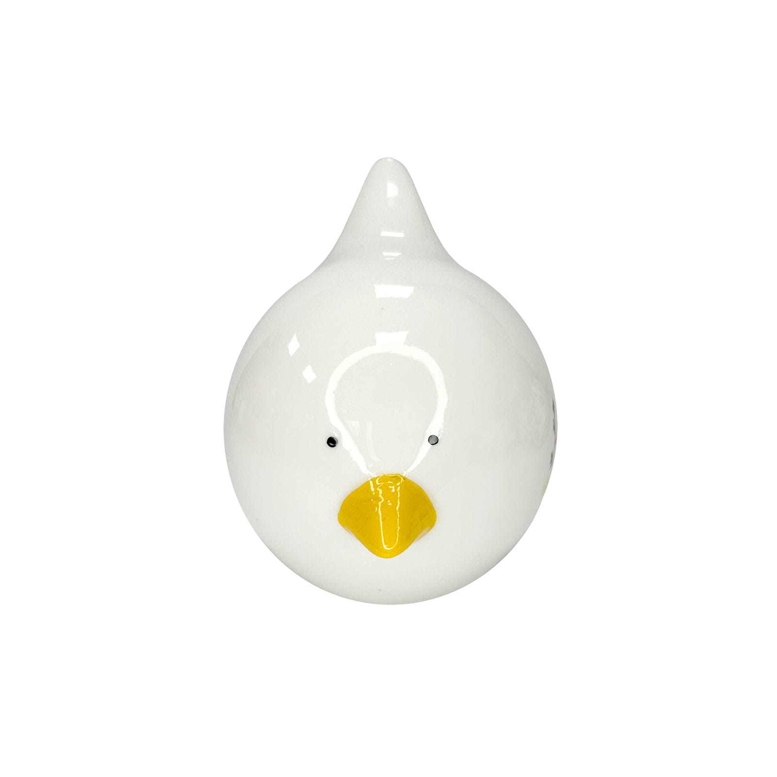 - Kolor: Biały z żółtym dziobkiem i kwiatkami po bokach