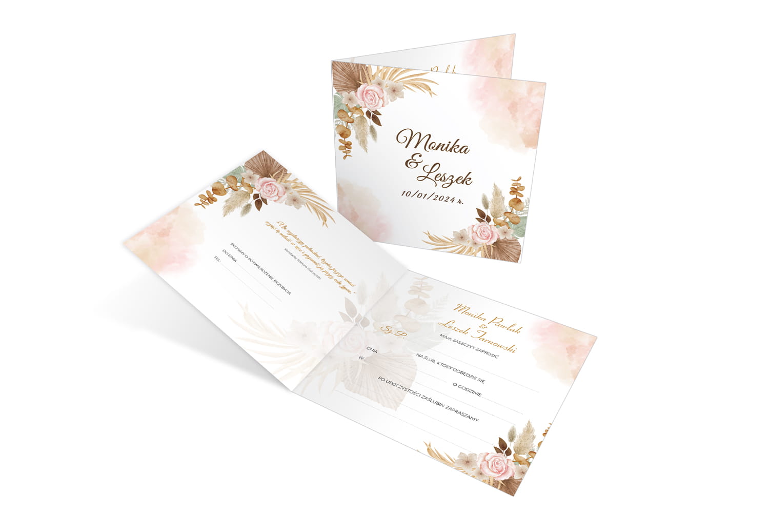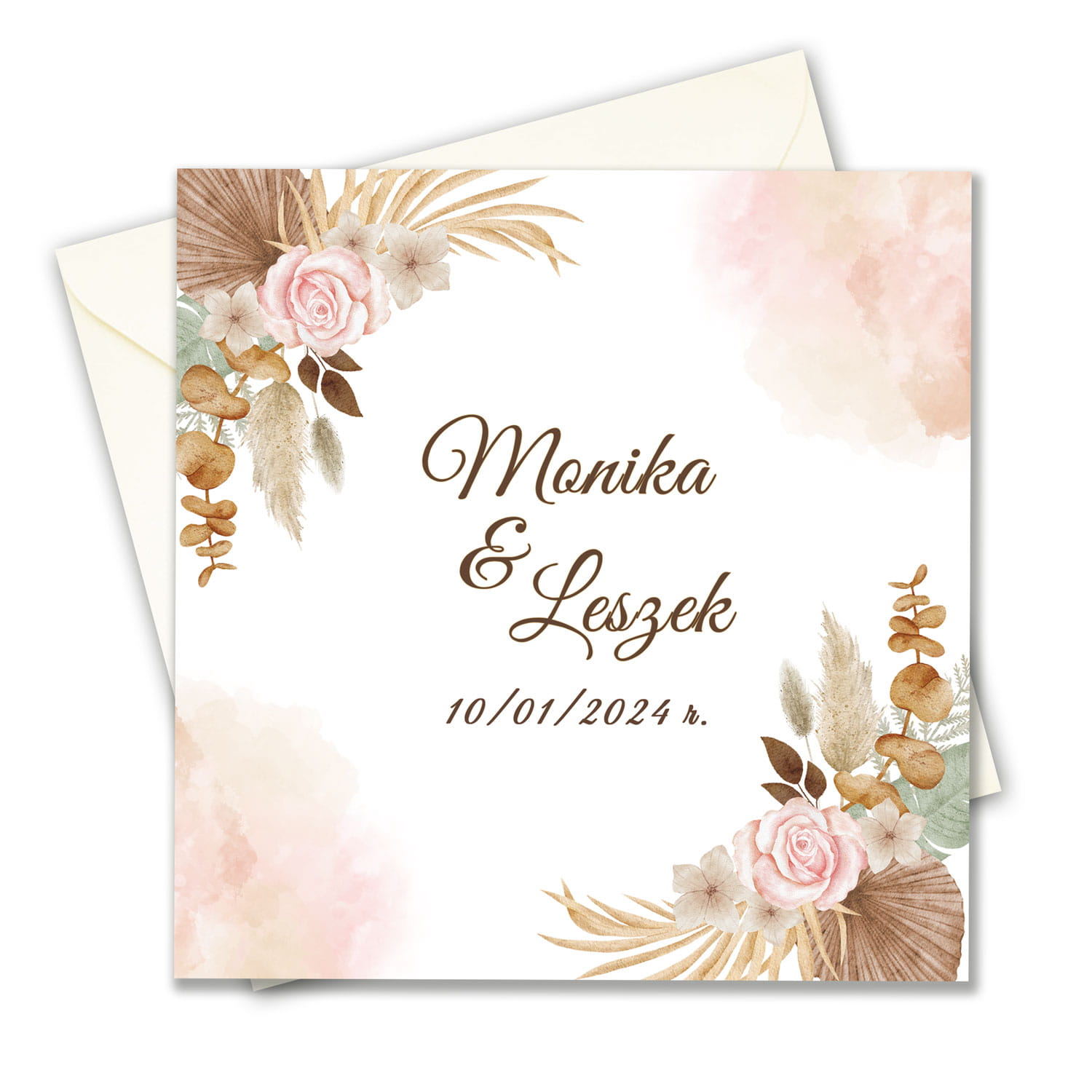 Rozmiar zaproszenia po złożeniu: 15 x 15 cm.