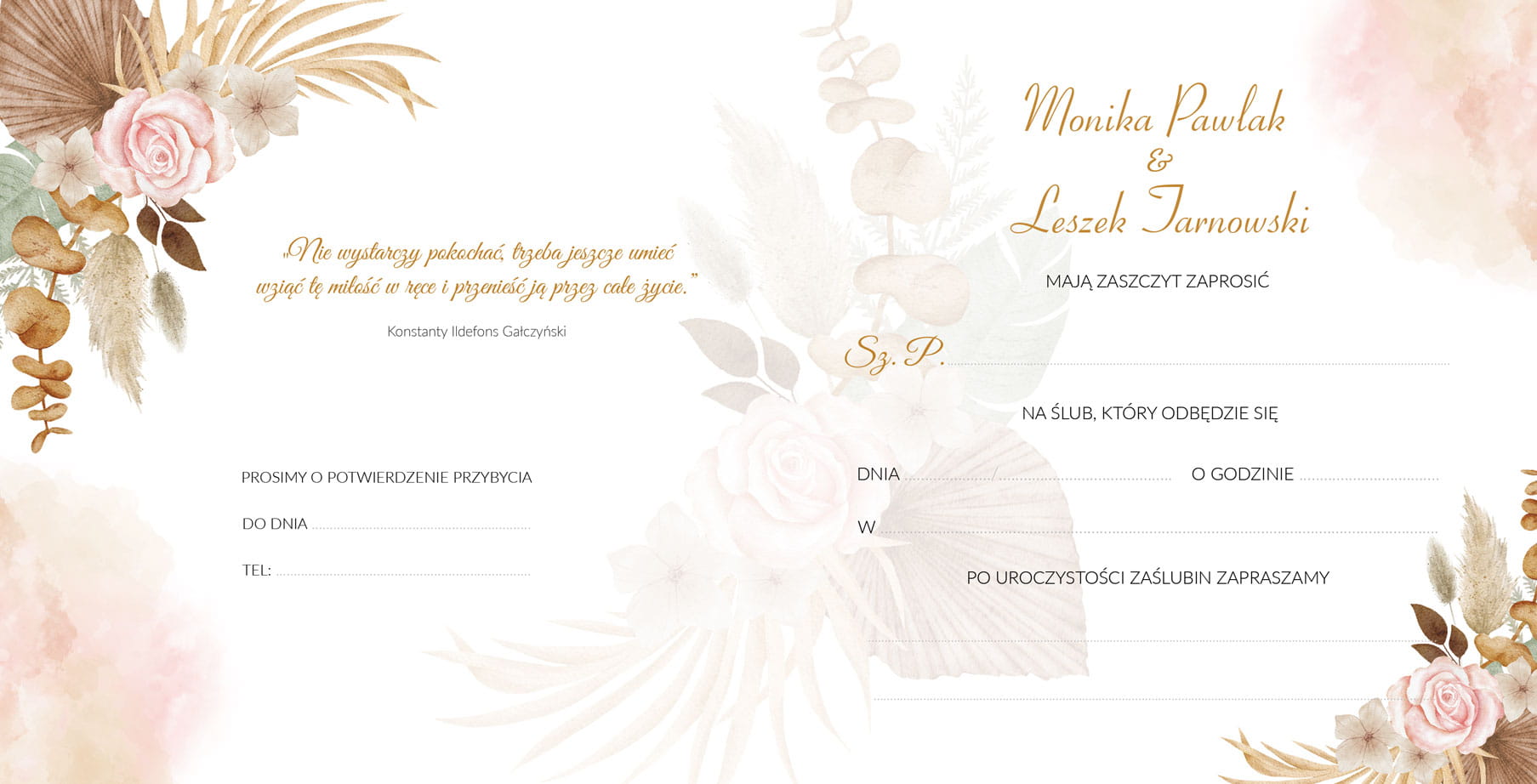 Imiona pary młodej oraz datę uroczystości prosimy wpisywać w polach do tego przeznaczonych.