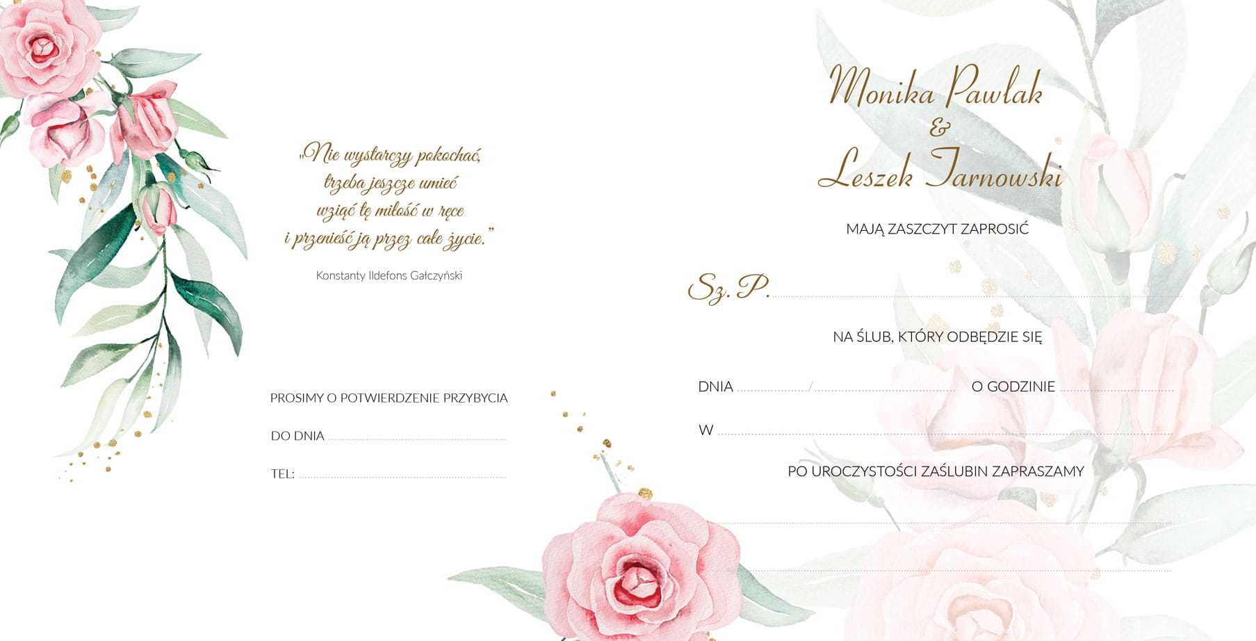 Zaproszenie na Ślub, personalizowane