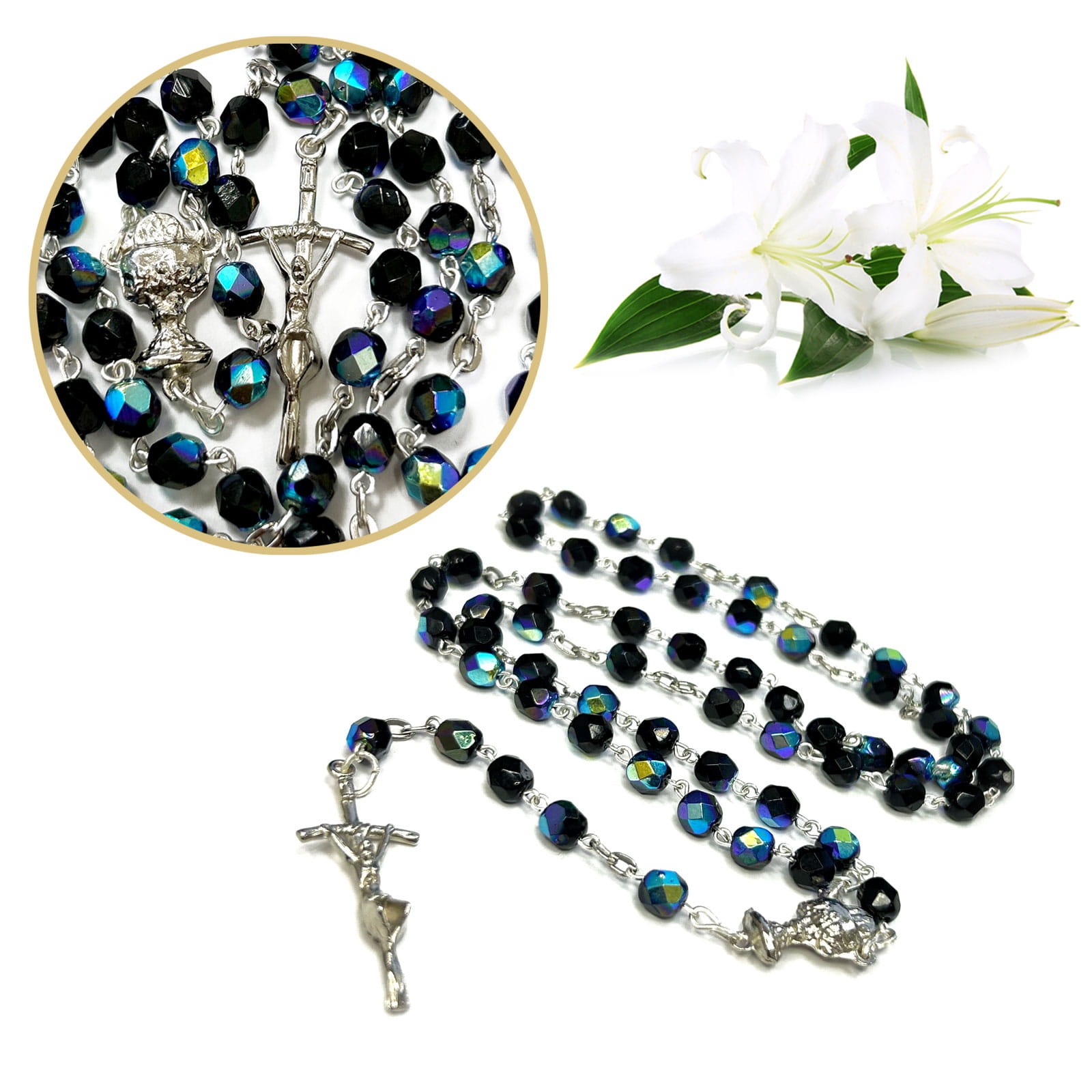 Pierwsza Komunia Święta to bardzo ważna uroczystość dla wszystkich wiernych, nie tylko dzieci które po raz pierwszy będą uczestniczyć w pełni Sakramentu Eucharystii. Nieodłącznym elementem tej pięknej chwili jest różaniec. Produkt, który Państwu proponujemy idealnie sprawdzi się jako pamiątka na lata, przypominająca o tym ważnym momencie w życiu. Dostępny na naszej stronie różaniec pierwszokomunijny będzie wspaniałym prezentem, zwieńczającym tę podniosła chwilę w życiu młodego katolika. Materiałem zastosowanym przy produkcji paciorków różańca jest kryształ.