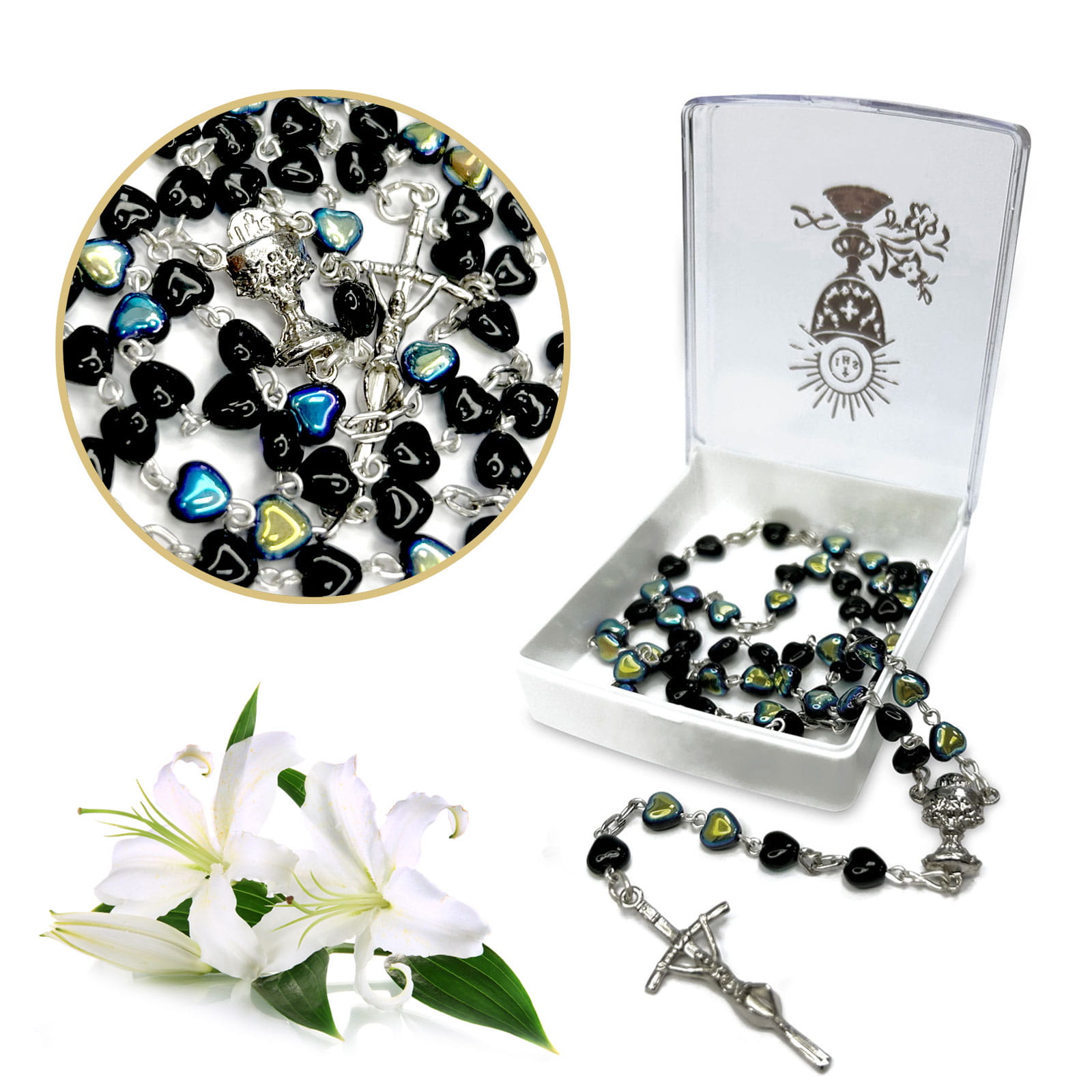 Pierwsza Komunia Święta to bardzo ważna uroczystość dla wszystkich wiernych, nie tylko dzieci które po raz pierwszy będą uczestniczyć w pełni Sakramentu Eucharystii. Nieodłącznym elementem tej pięknej chwili jest różaniec. Produkt, który Państwu proponujemy idealnie sprawdzi się jako pamiątka na lata, przypominająca o tym ważnym momencie w życiu. Dostępny na naszej stronie różaniec pierwszokomunijny będzie wspaniałym prezentem, zwieńczającym tę podniosła chwilę w życiu młodego katolika.