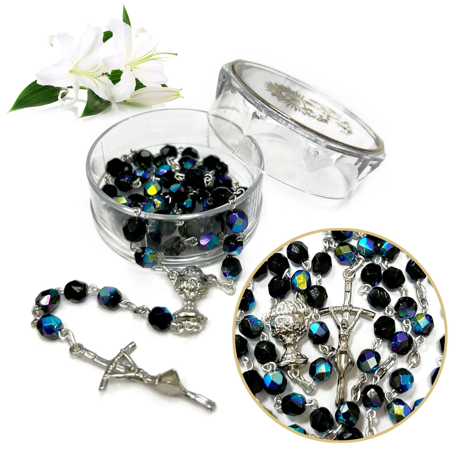 Pierwsza Komunia Święta to bardzo ważna uroczystość dla wszystkich wiernych, nie tylko dzieci które po raz pierwszy będą uczestniczyć w pełni Sakramentu Eucharystii. Nieodłącznym elementem tej pięknej chwili jest różaniec. Produkt, który Państwu proponujemy idealnie sprawdzi się jako pamiątka na lata, przypominająca o tym ważnym momencie w życiu. Dostępny na naszej stronie różaniec pierwszokomunijny będzie wspaniałym prezentem, zwieńczającym tę podniosła chwilę w życiu młodego katolika.