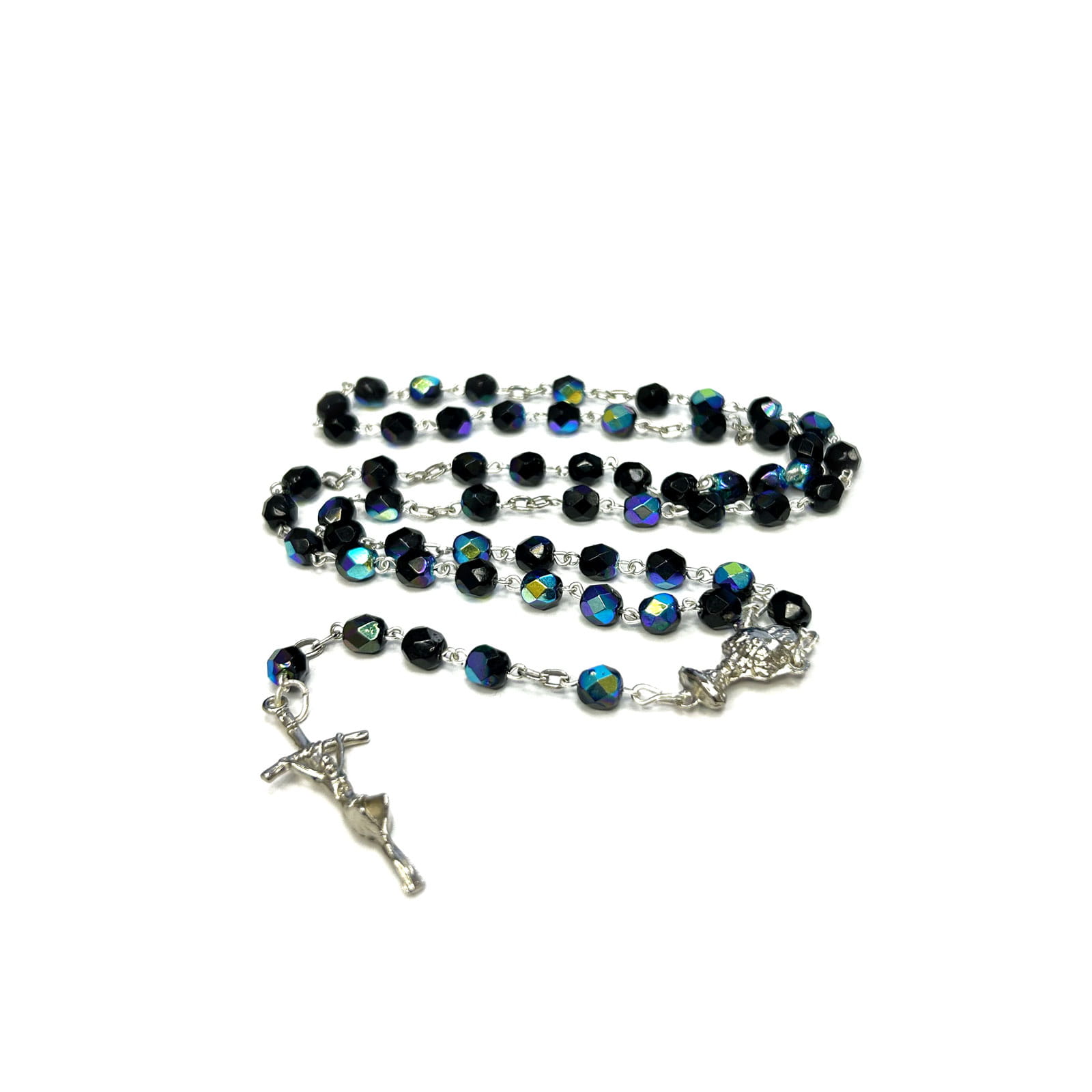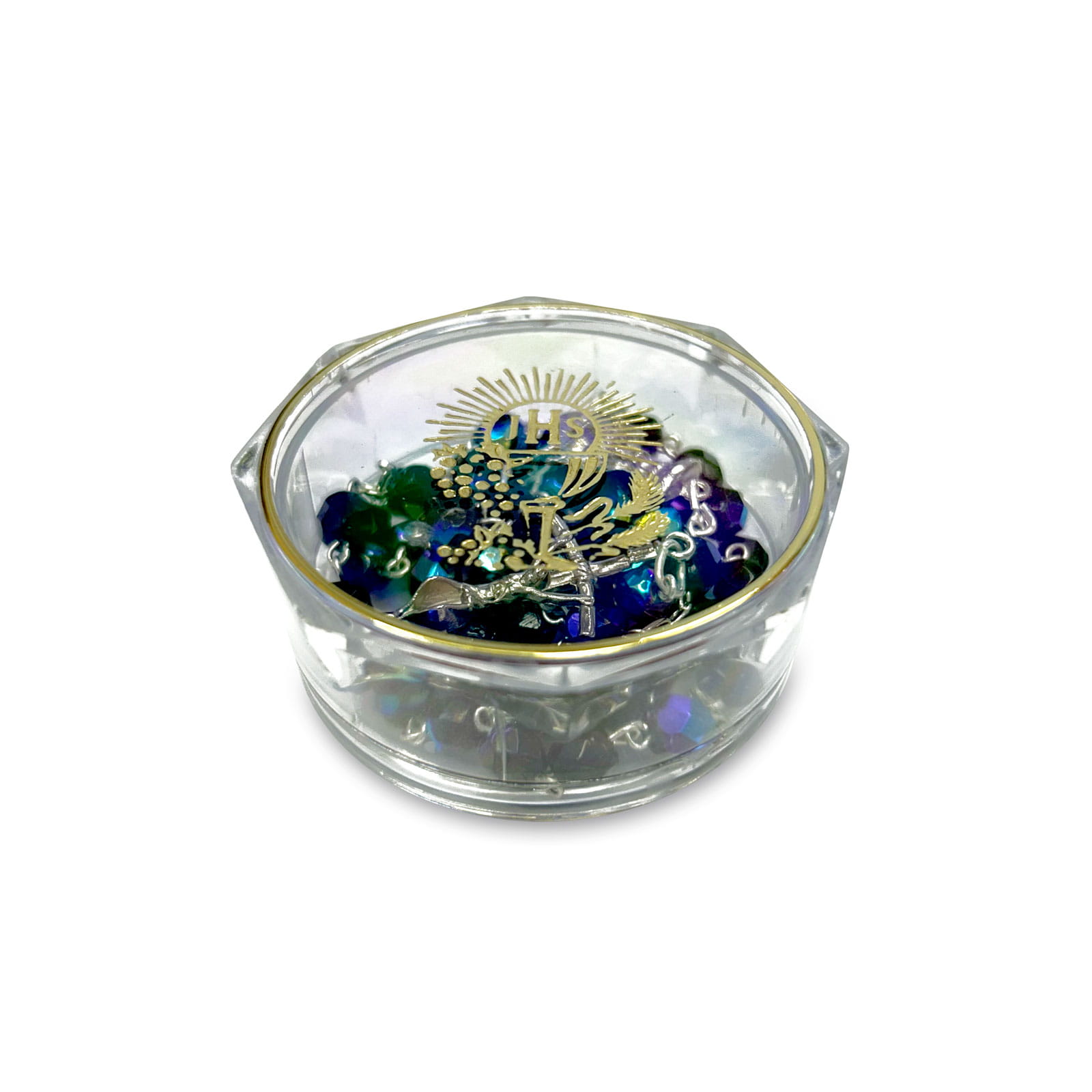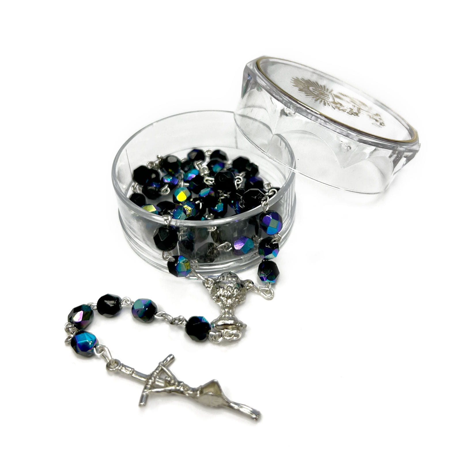Różaniec komunijny - granatowy - kryształ + pudełeczko na różaniec