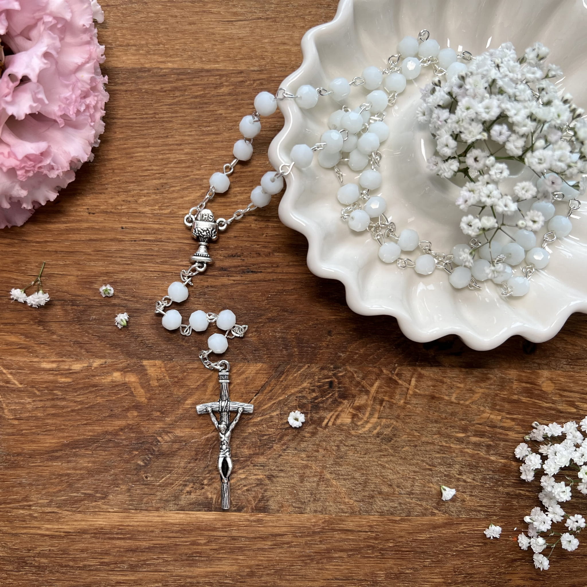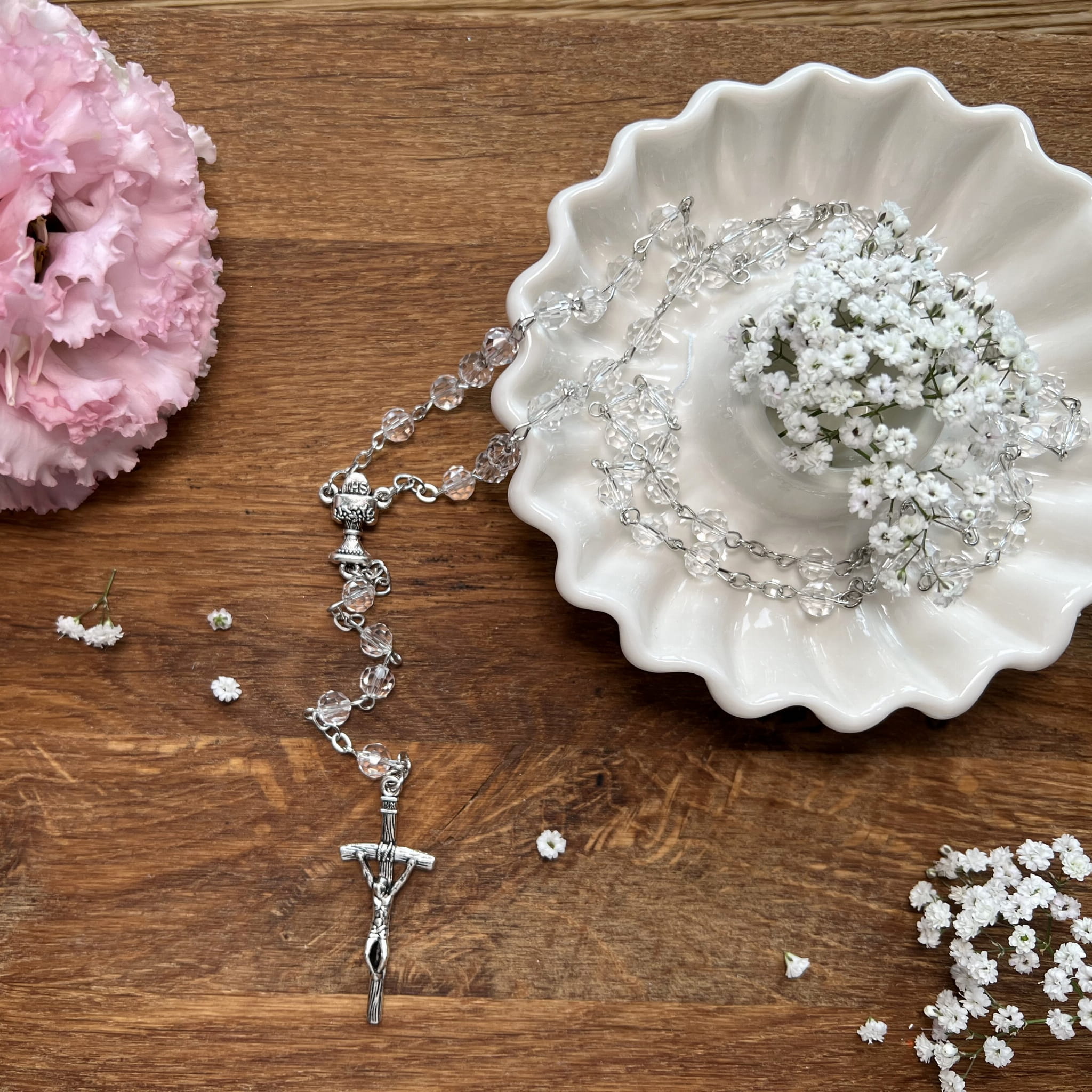 Różaniec komunijny - Pierwsza Komunia Święta - kryształ