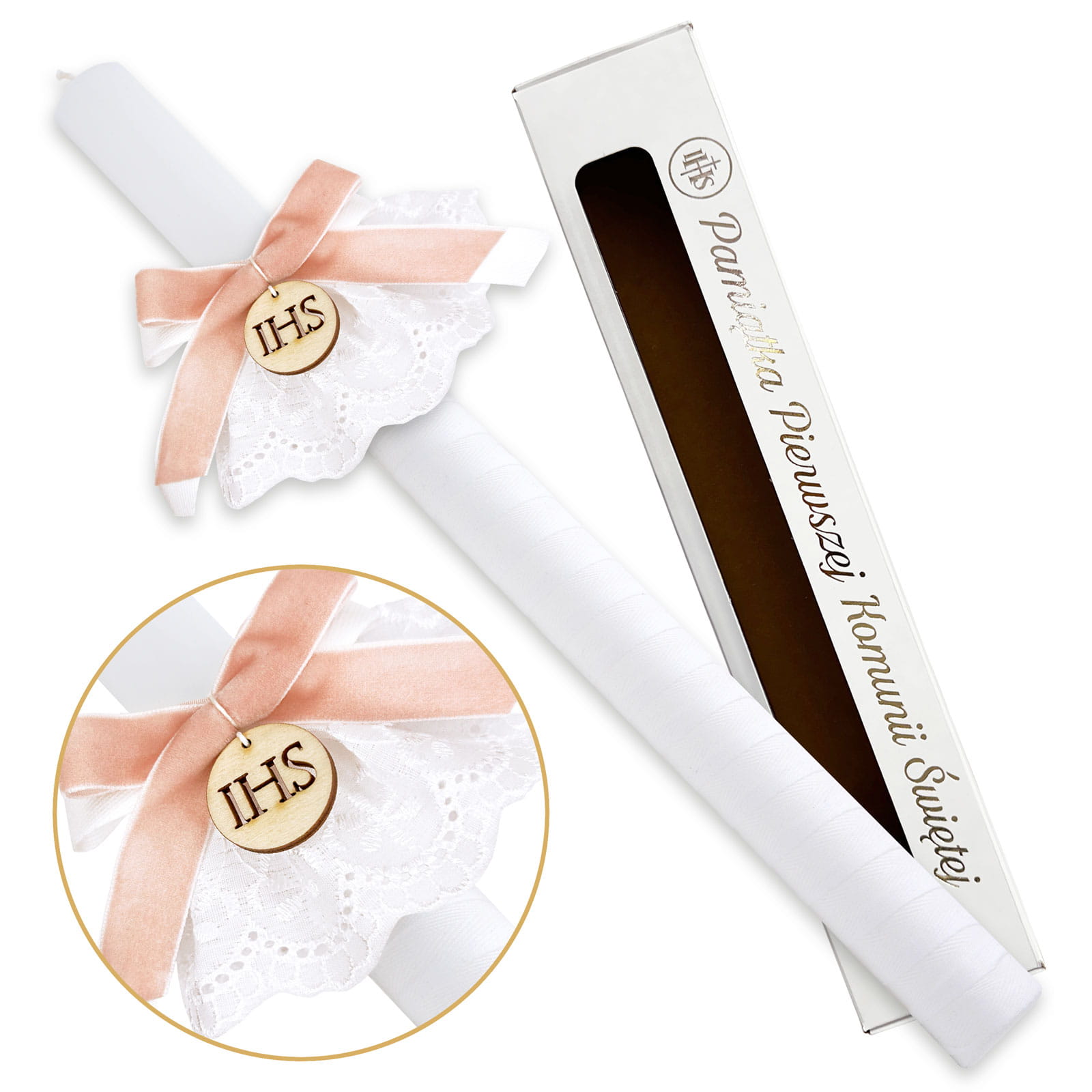 Świeca do Pierwszej Komunii Świętej dla dziewczynki - pudełko - ręcznie zdobiona