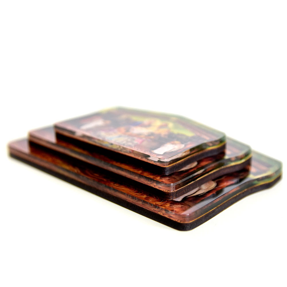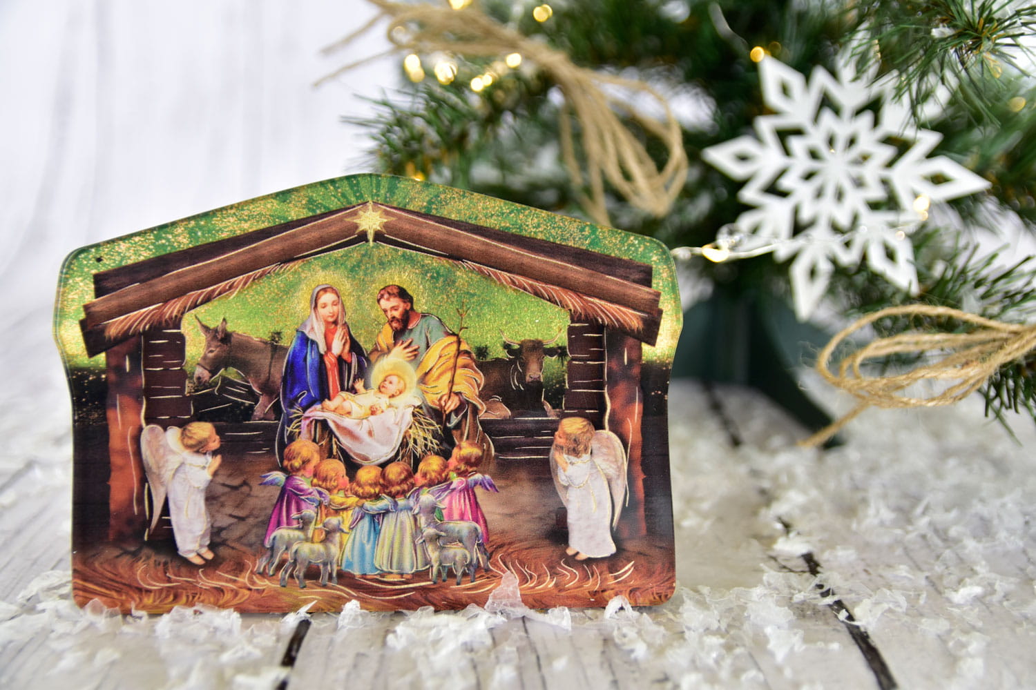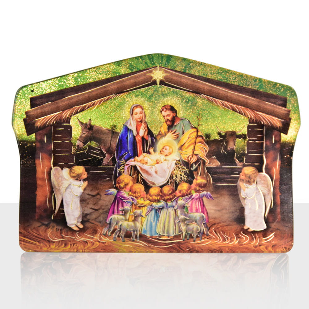 W ofercie dostępne są wyjątkowe Szopki Bożonarodzeniowe wykonane z pleksi i materiału drewnopodobnego. Każda szopka zachwyca wyjątkowo wyraźnymi kolorami i grafiką przedstawionych postaci. Na produkcie widnieje Święta Rodzina w towarzystwie Aniołków. Szopka drewniana z pewnością idealnie sprawdzi się jako element dekoracji, który będzie można umieścić pod choinką lub na stole wigilijnym.