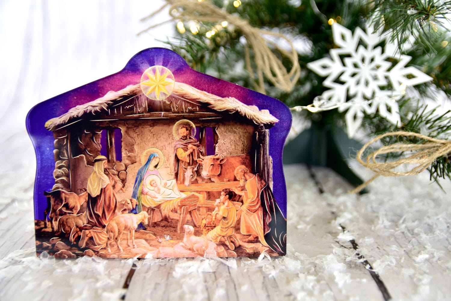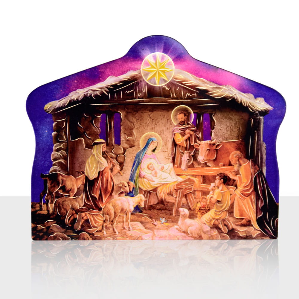 W ofercie dostępne są wyjątkowe Szopki Bożonarodzeniowe wykonane z pleksi i materiału drewnopodobnego. Każda szopka zachwyca wyjątkowo wyraźnymi kolorami i grafiką przedstawionych postaci. Na produkcie widnieje Święta Rodzina w towarzystwie Pasterzy. Szopka drewniana z pewnością idealnie sprawdzi się jako element dekoracji, który będzie można umieścić pod choinką lub na stole wigilijnym.
