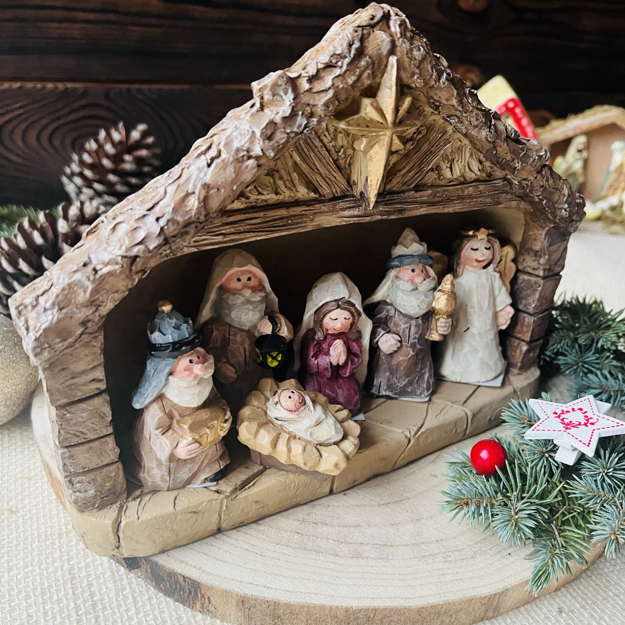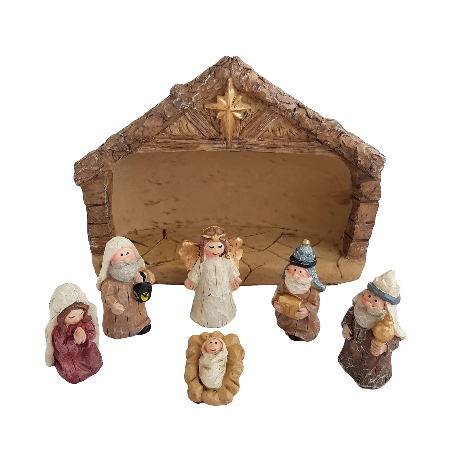 Szopka Bożonarodzeniowa z 6 figurkami ze sztucznego kamienia