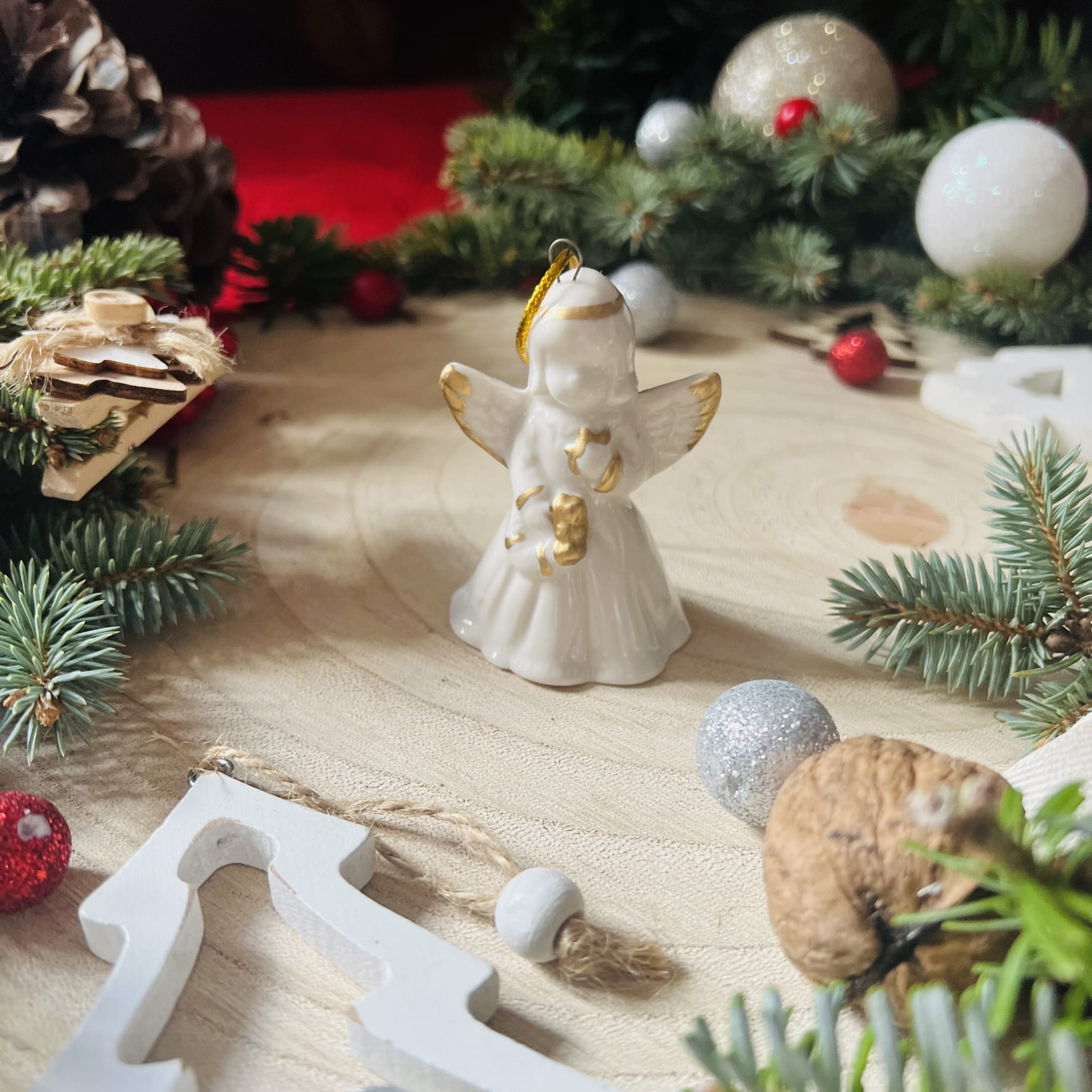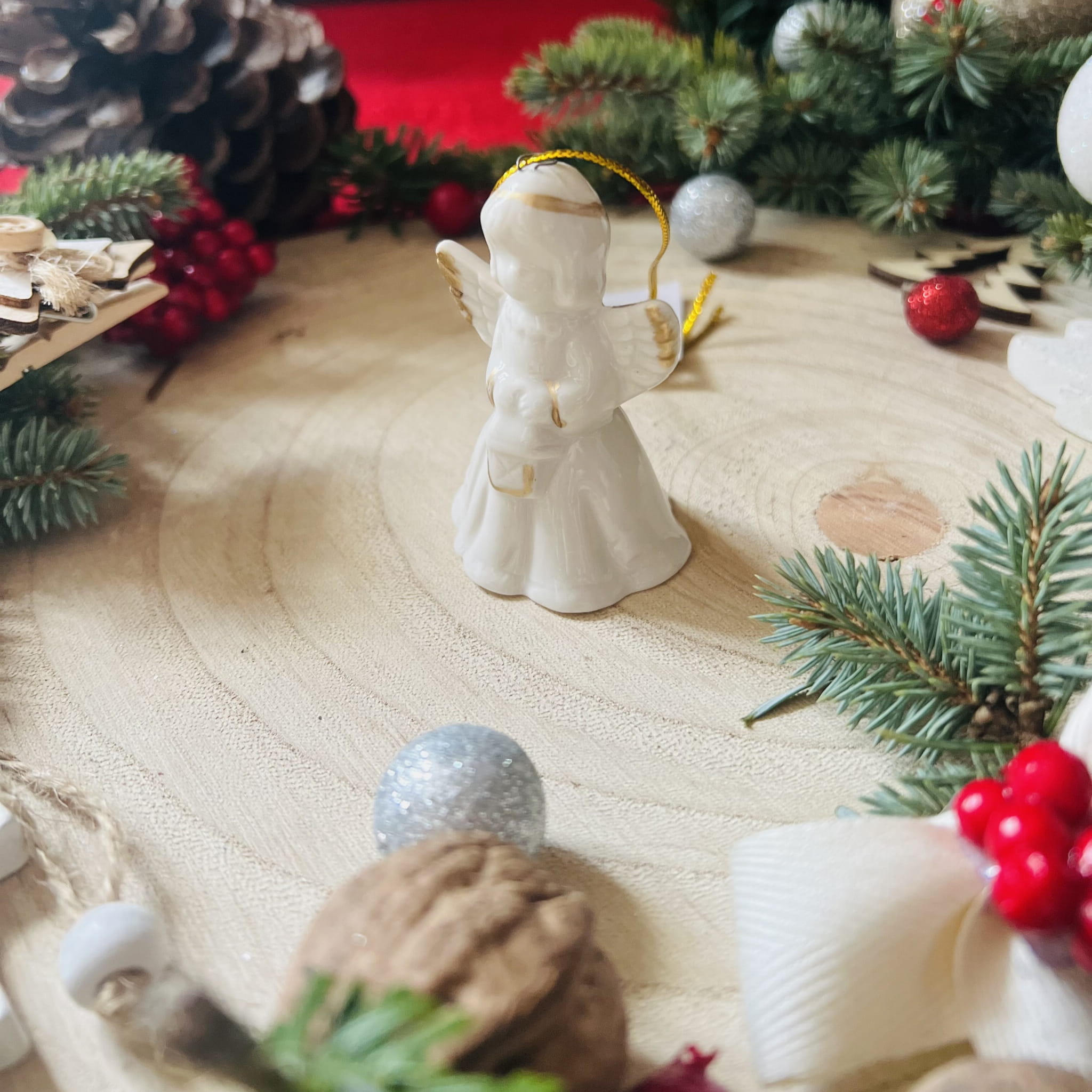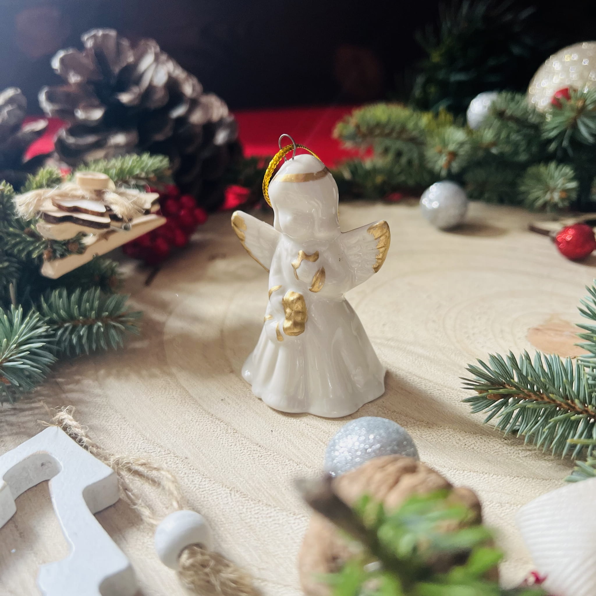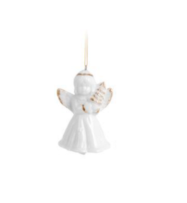 Aniołek zawieszka choinkowa, ozdoba bożonarodzeniowa z porcelany