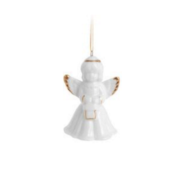 Porcelanowy aniołek w formie dzwonka to wyjątkowa i elegancka zawieszka na choinkę. Biało-złote wykończenie sprawia, że ozdoba prezentuje się bardzo subtelnie i efektownie, doskonale pasując do świątecznych dekoracji.