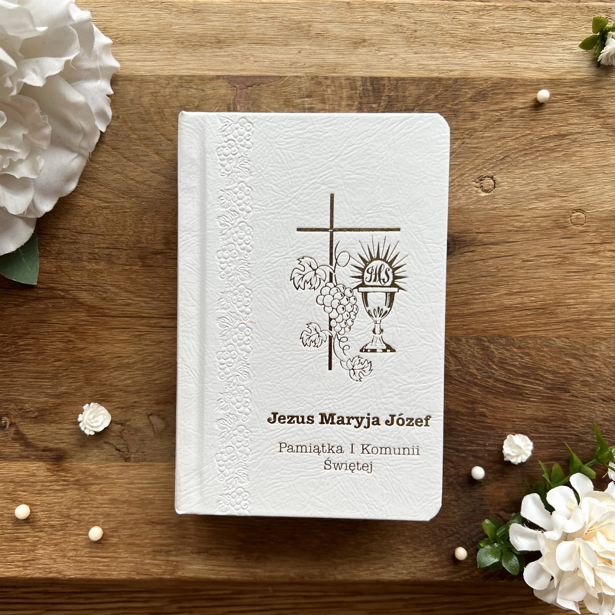 - książeczka pierwszokomunijna - kolor biały - Jezus, Maryja , Józef.